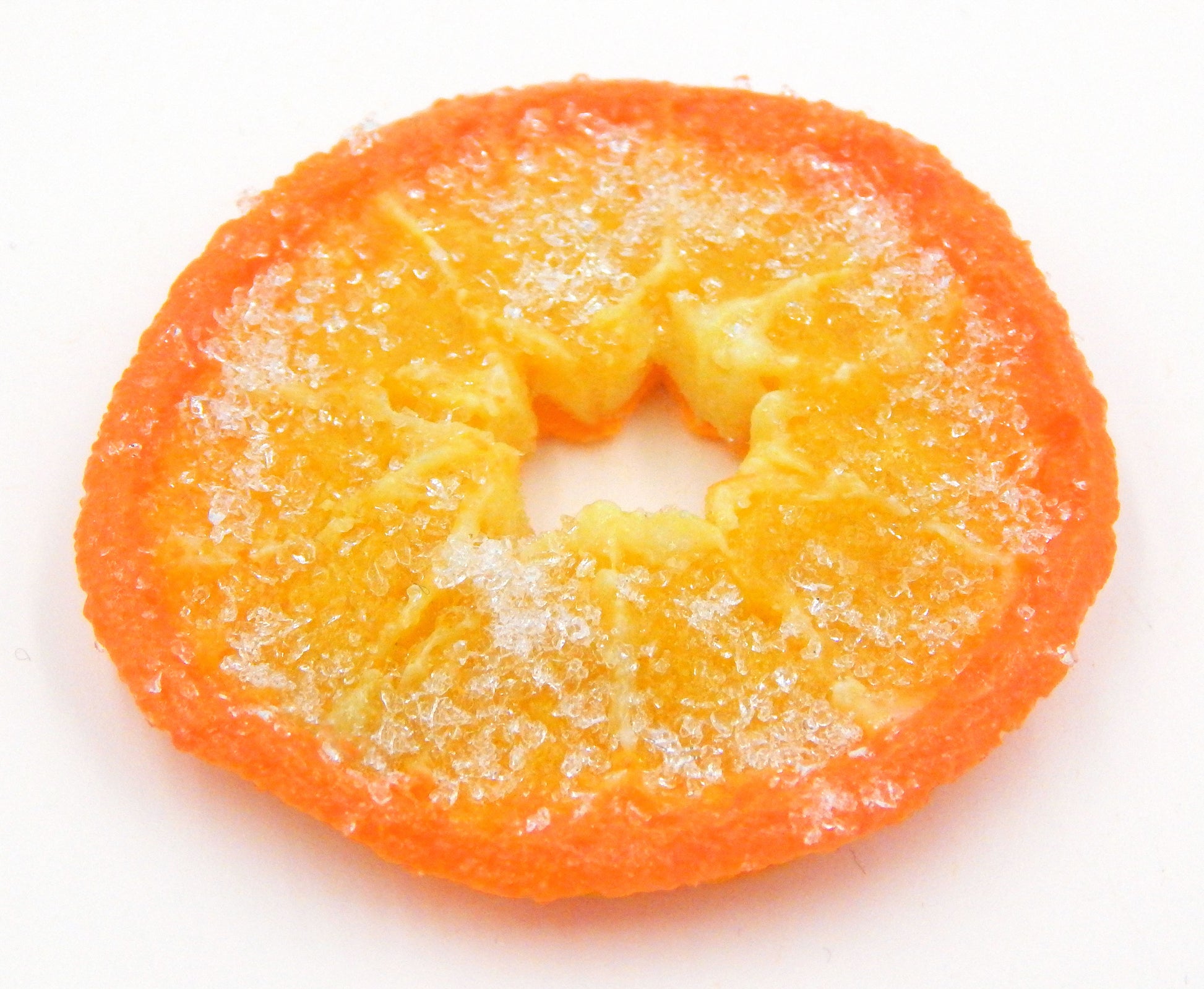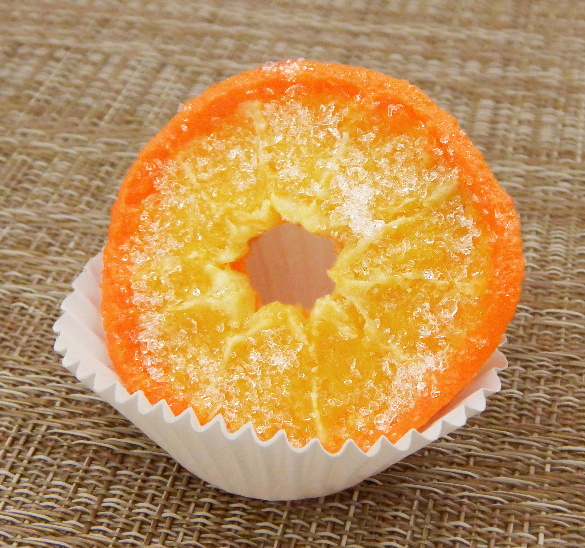 This collectible solid glass sugared orange slice is created from finely ground colored glass powders using variations of the centuries old technique of pate de verre. Meticulous attention to detail has gone into the construction of each of our pieces to enhance its appeal and collectibility.