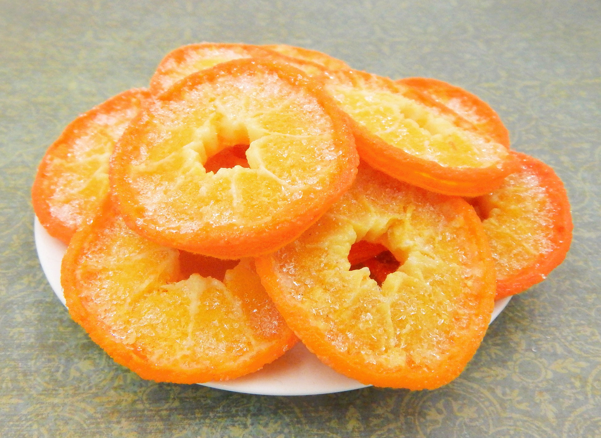 This listing is for 1 glass sugared orange slice as seen in the first photo. The third photo shows an example of the slight variation between the individual handmade sugared orange slices. The final photos show other of the glass goodies in our Marzipan Collection.