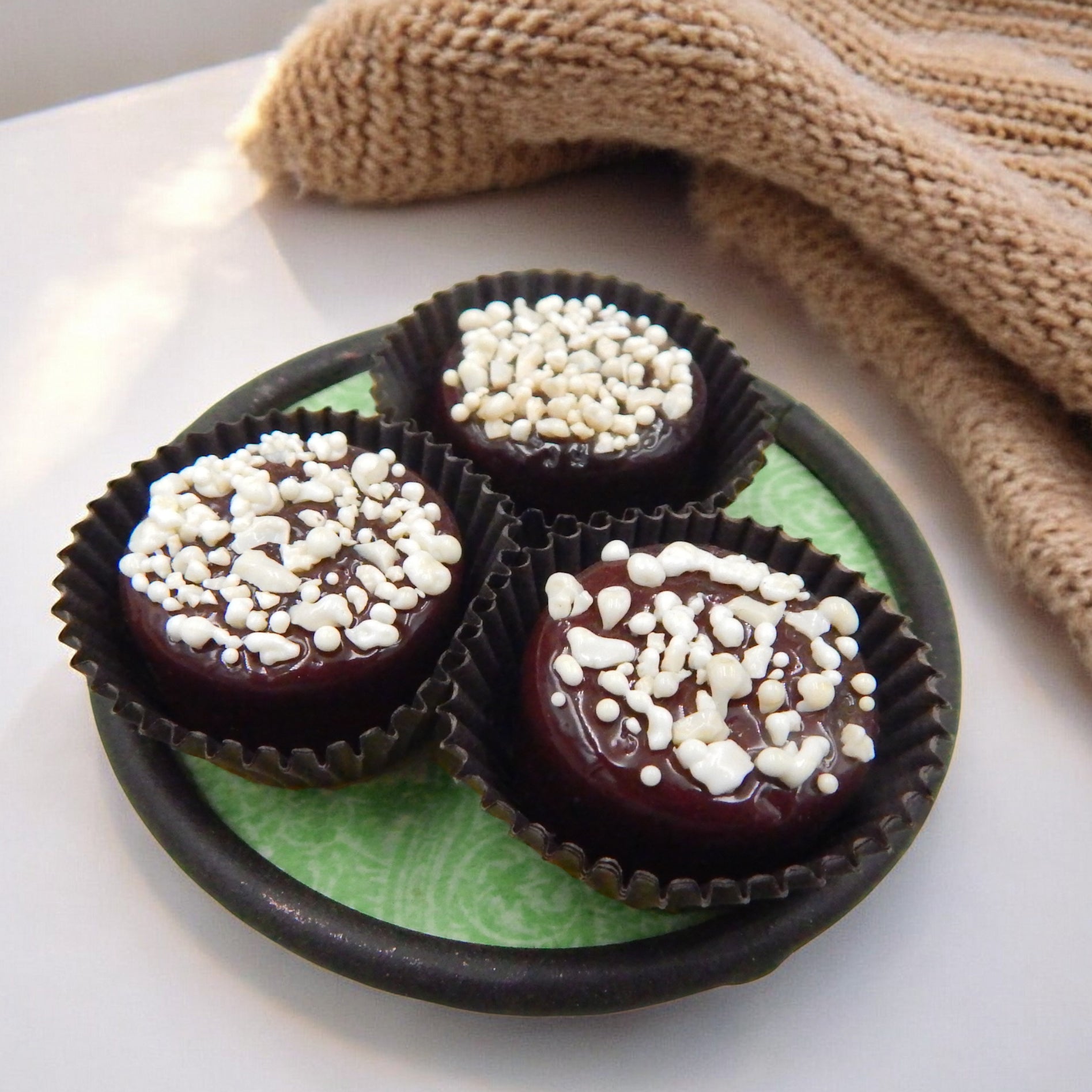 All of our products are individually handmade, so the actual pieces may vary slightly from the images shown. This listing is for 1 glass chocolate.