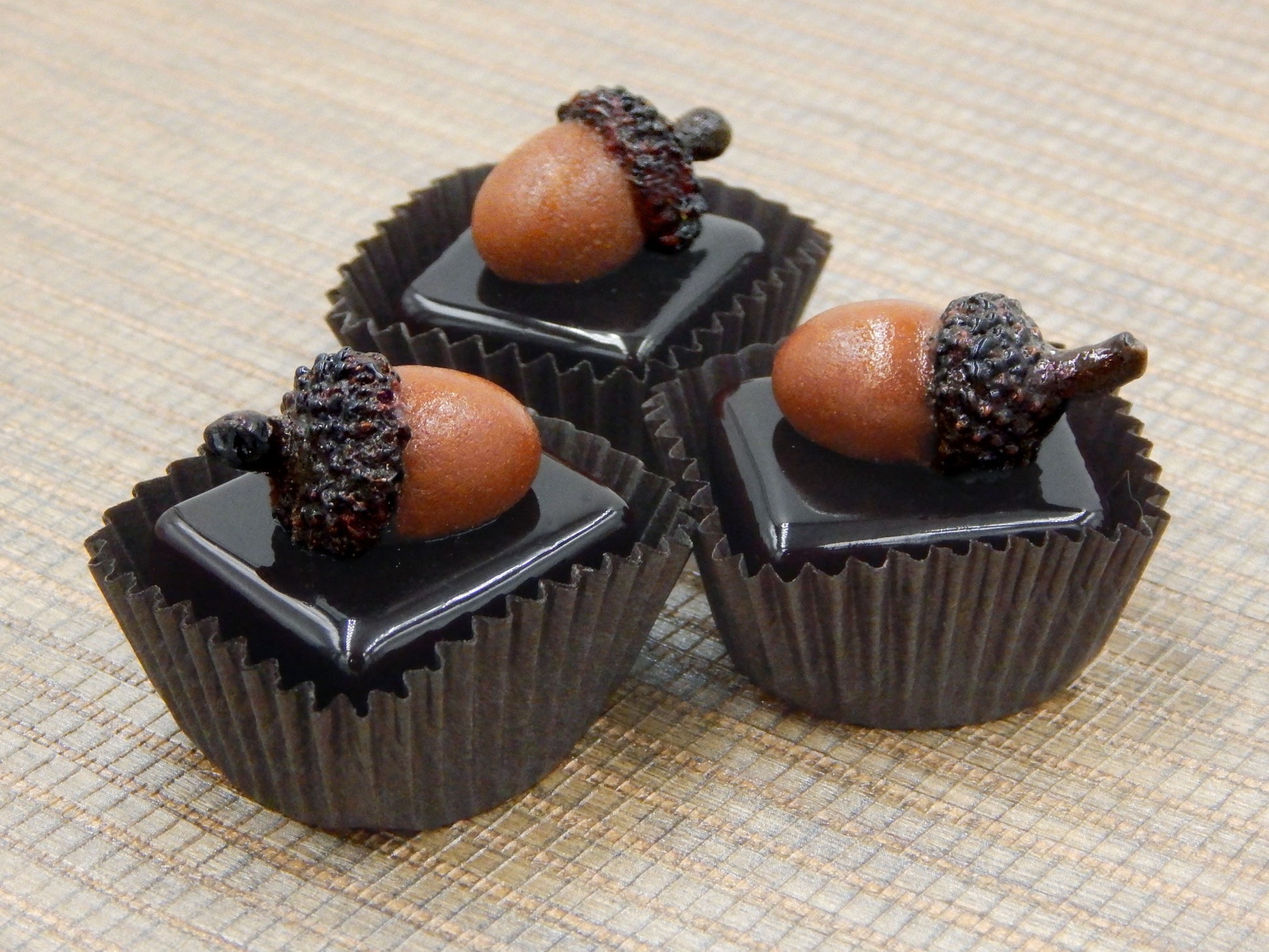 This listing is for 1 glass chocolate as seen in the first photo. The third photo shows an example of the slight variation between individual handmade chocolates and the final photo shows both vanilla and dark chocolates with acorns. The vanilla acorn chocolates are also available.