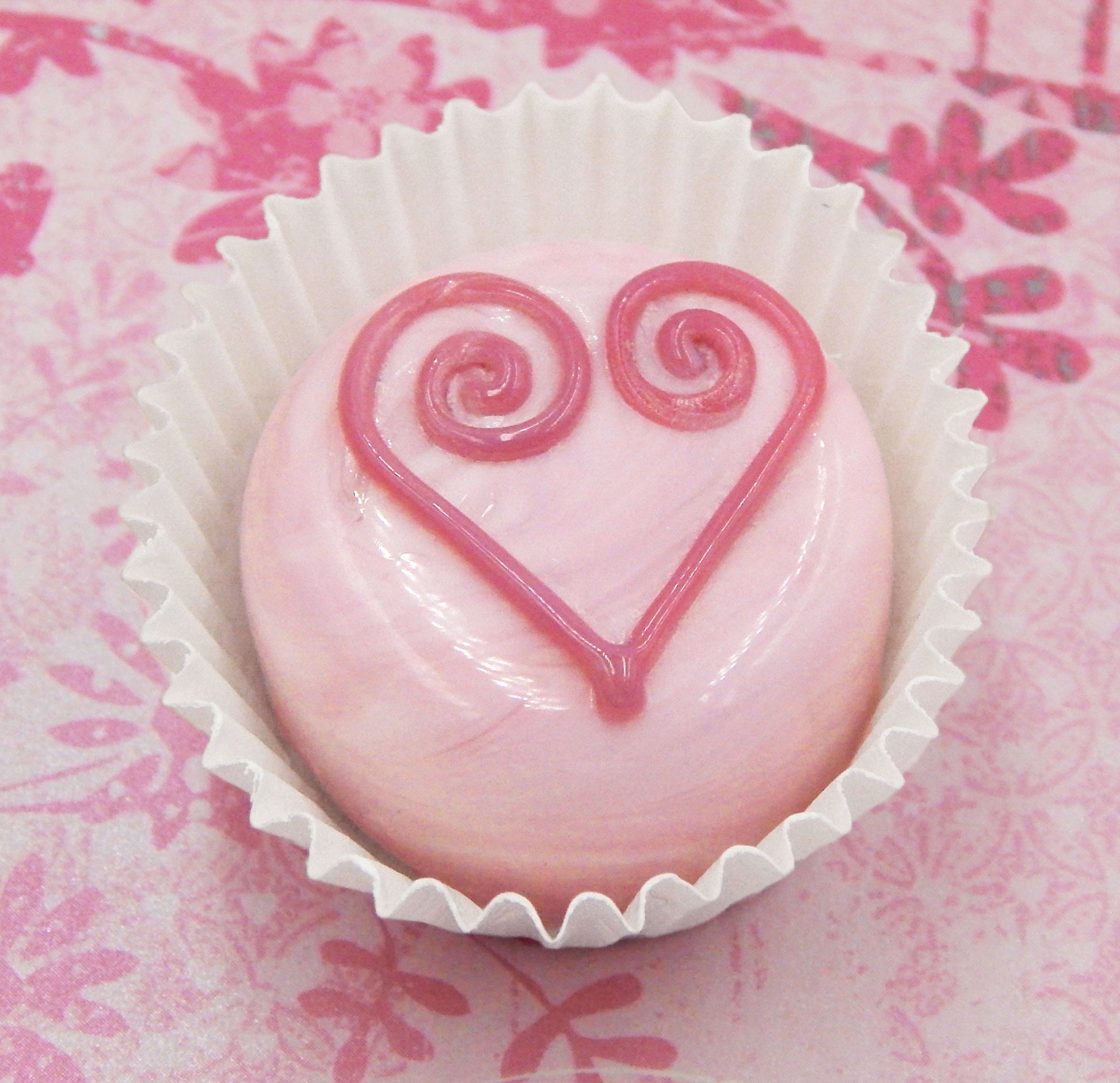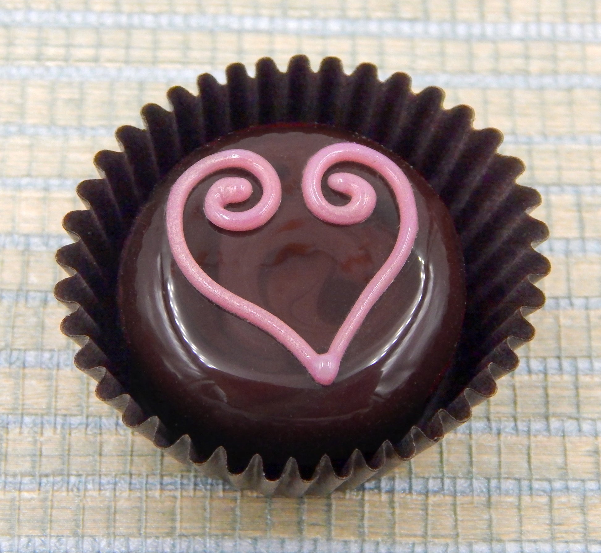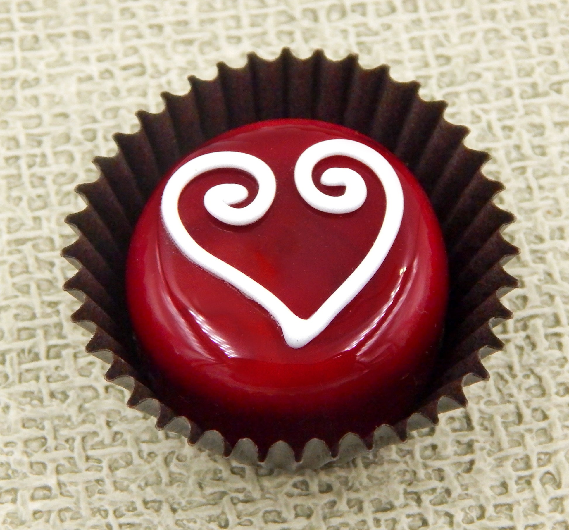 Handmade collectible solid glass chocolates each with a whimsical curly heart on top created from colorful glass utilizing flameworking techniques. Meticulous attention to detail has gone into the construction of each of our pieces to enhance its appeal and collectibility.