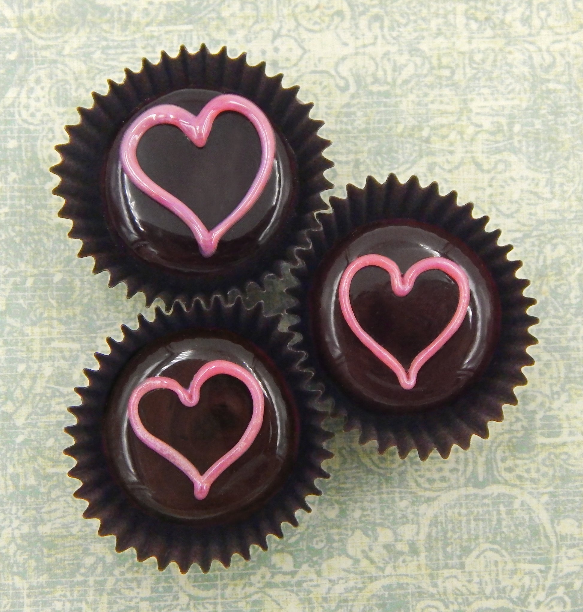 These inedible chocolates are from our 'Hearts & Flowers Collection' and are among our many chocolate treats. We design our art glass delicacies to evoke memories of innocence, love and happy times. These pieces are created to tease, seduce, tempt and delight. Use them to create a unique display in a favorite heirloom dish or cabinet for your home or office. They are also perfect and thoughtful gifts for yourself or your friends.