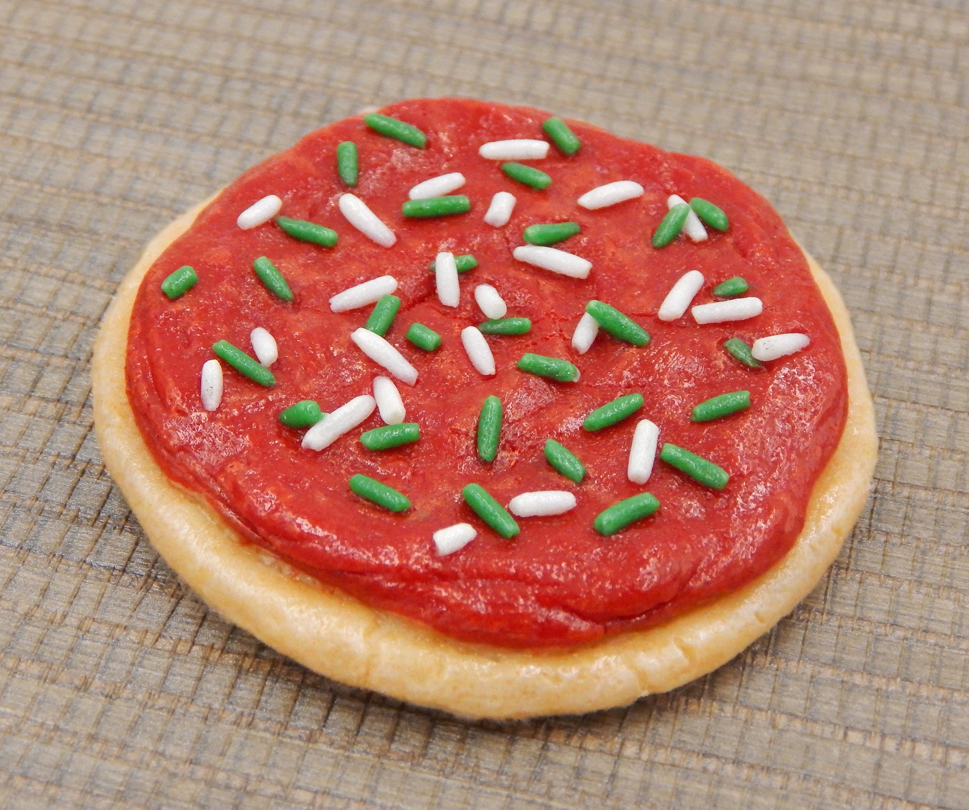 A handmade collectible solid glass Christmas sugar cookie with red icing topped with festive white & green holiday sprinkles and crafted from colorful glass utilizing ancient pate de verre techniques. Meticulous attention to detail has gone into the construction of each of our pieces to enhance its appeal and collectibility.