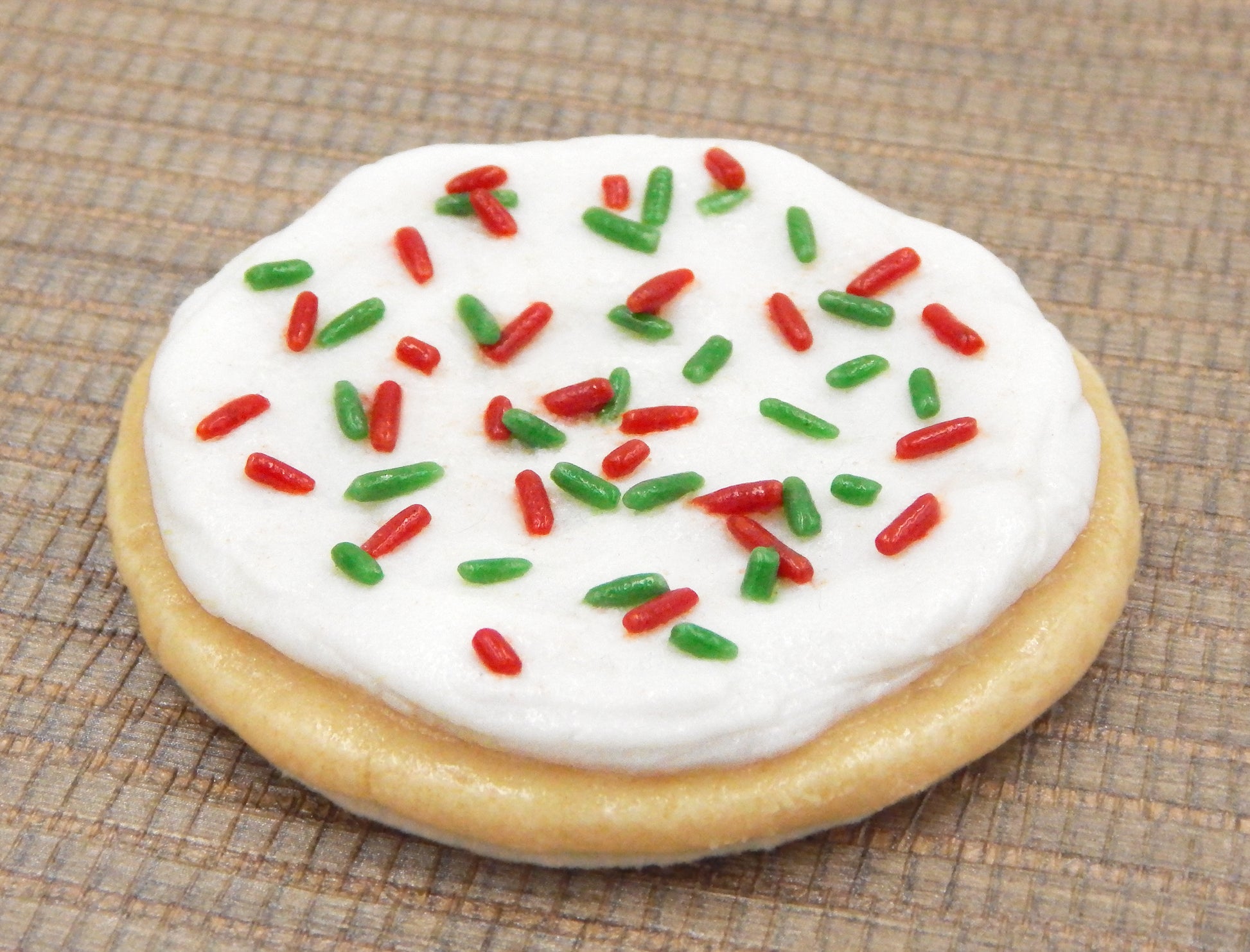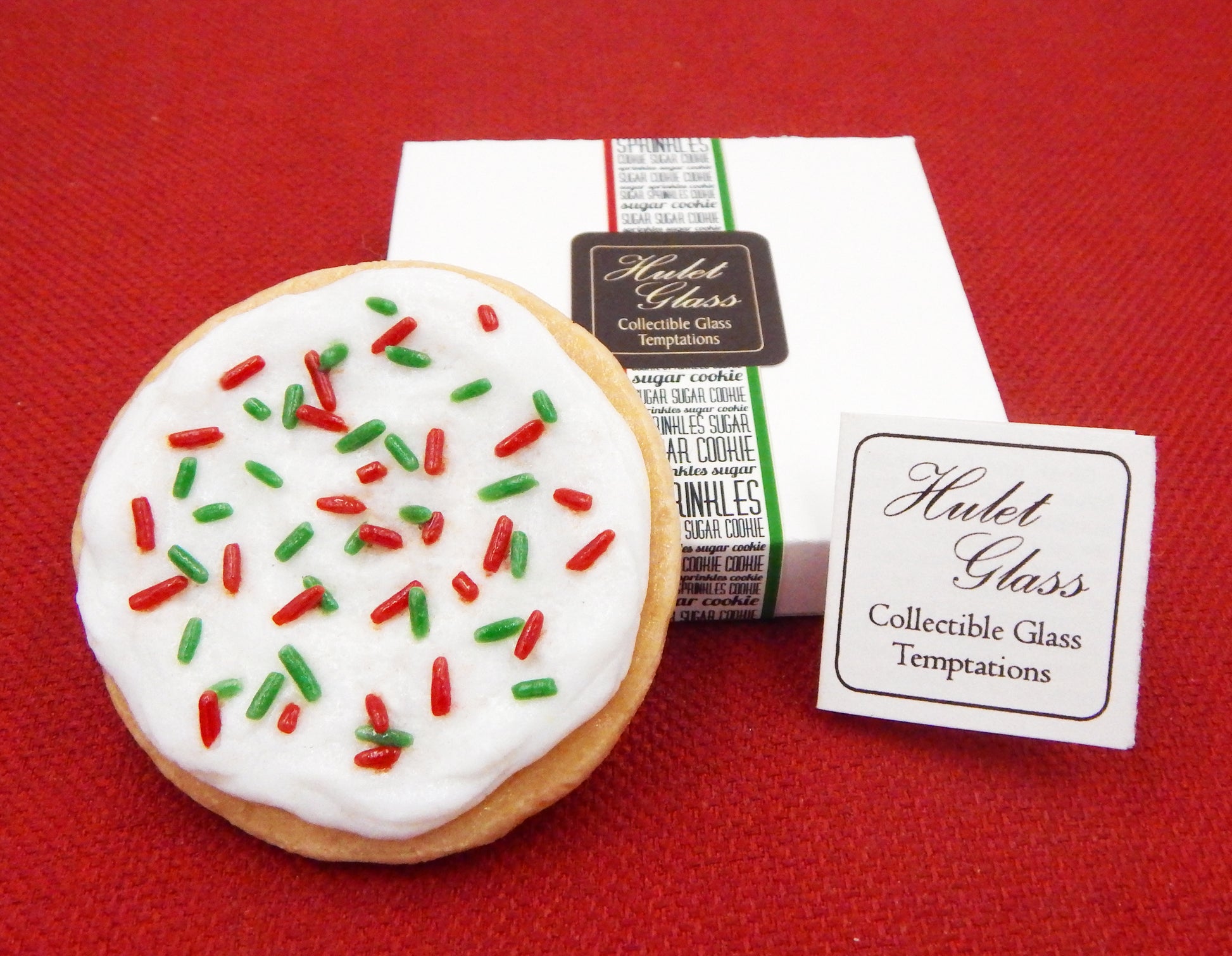 A handmade collectible solid glass Christmas sugar cookie with white icing topped with festive red & green holiday sprinkles and crafted from colorful glass utilizing ancient pate de verre techniques. Meticulous attention to detail has gone into the construction of each of our pieces to enhance its appeal and collectibility.