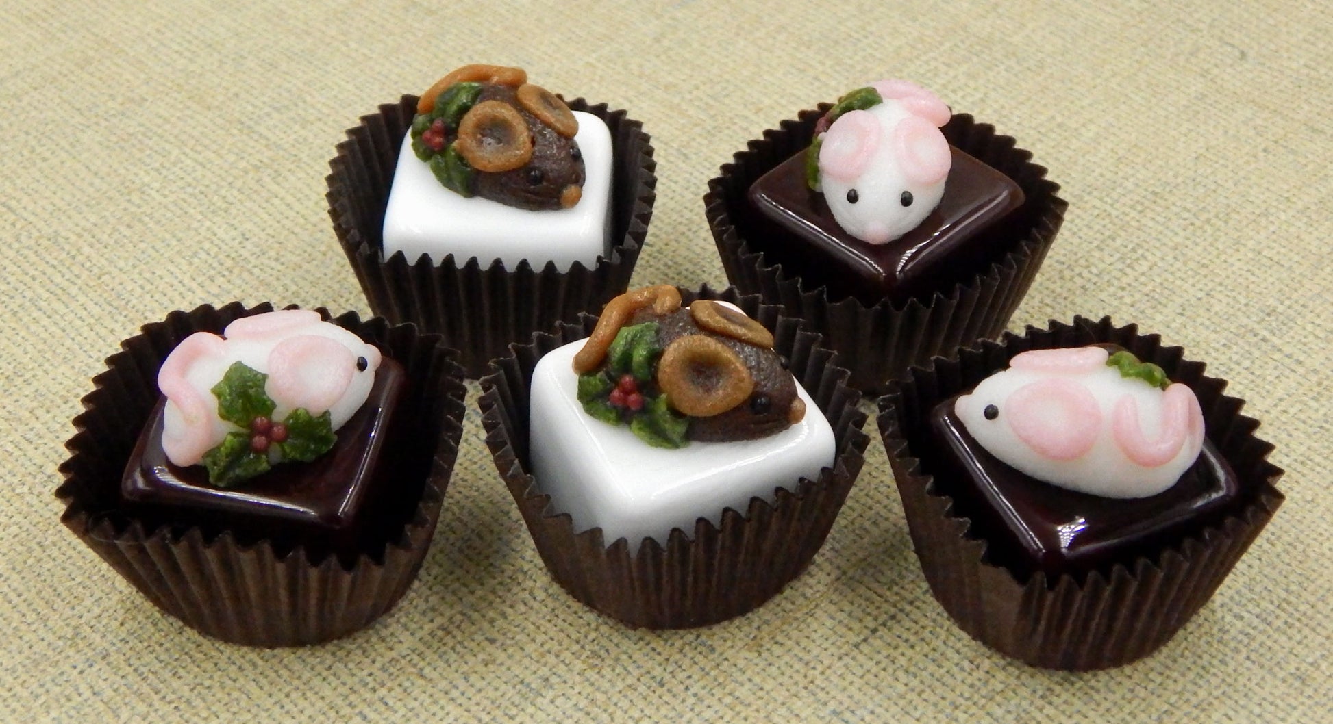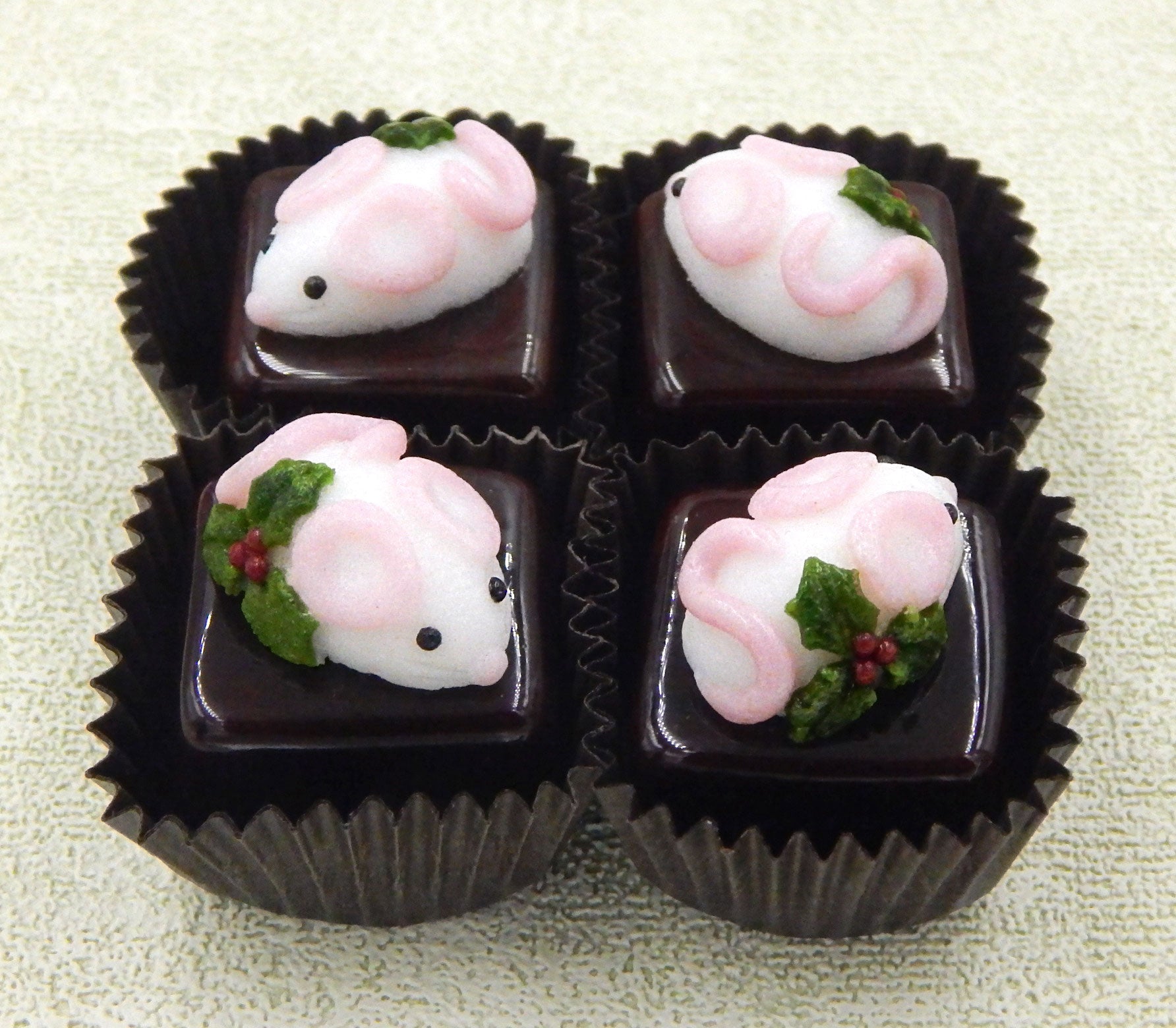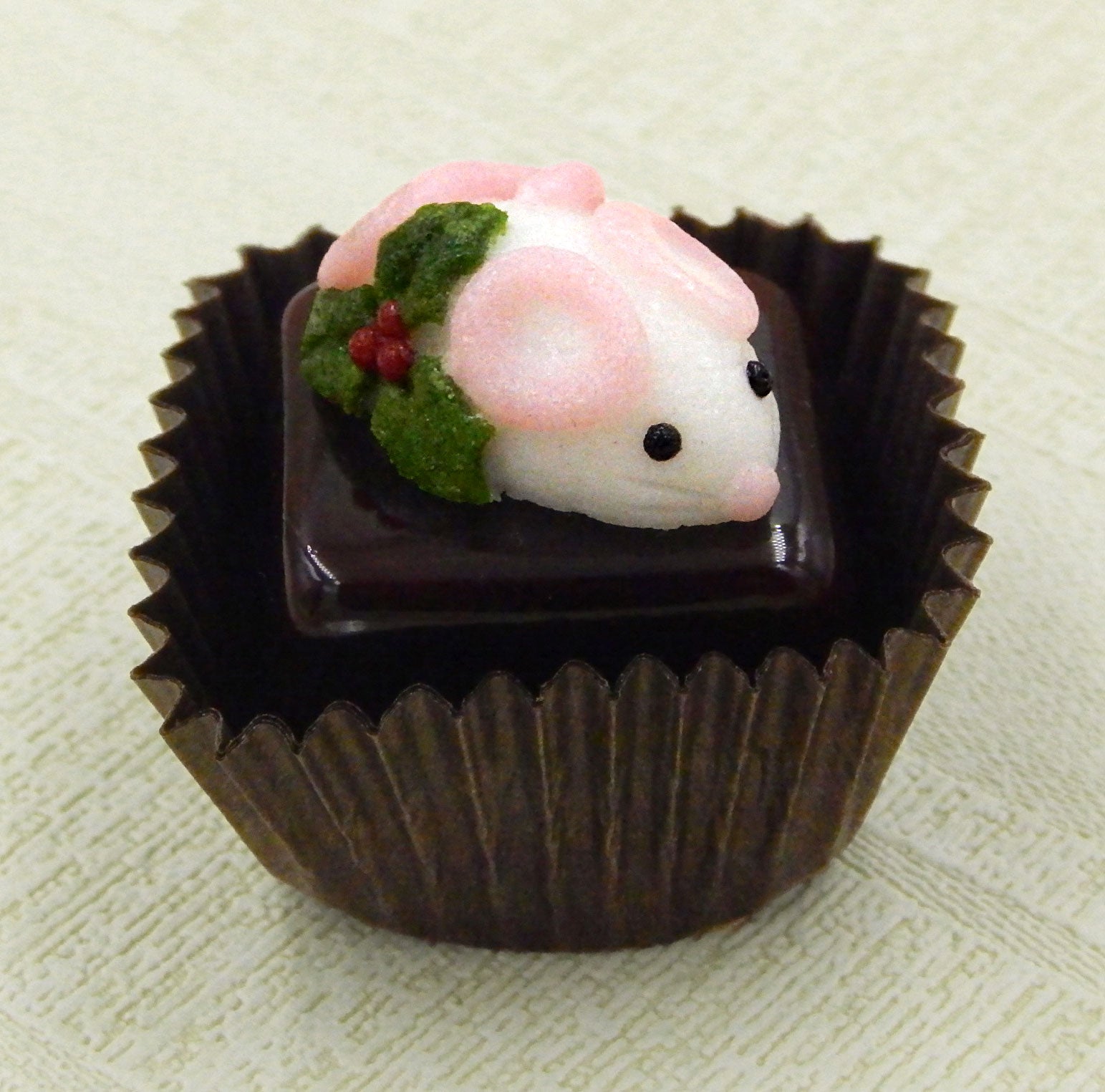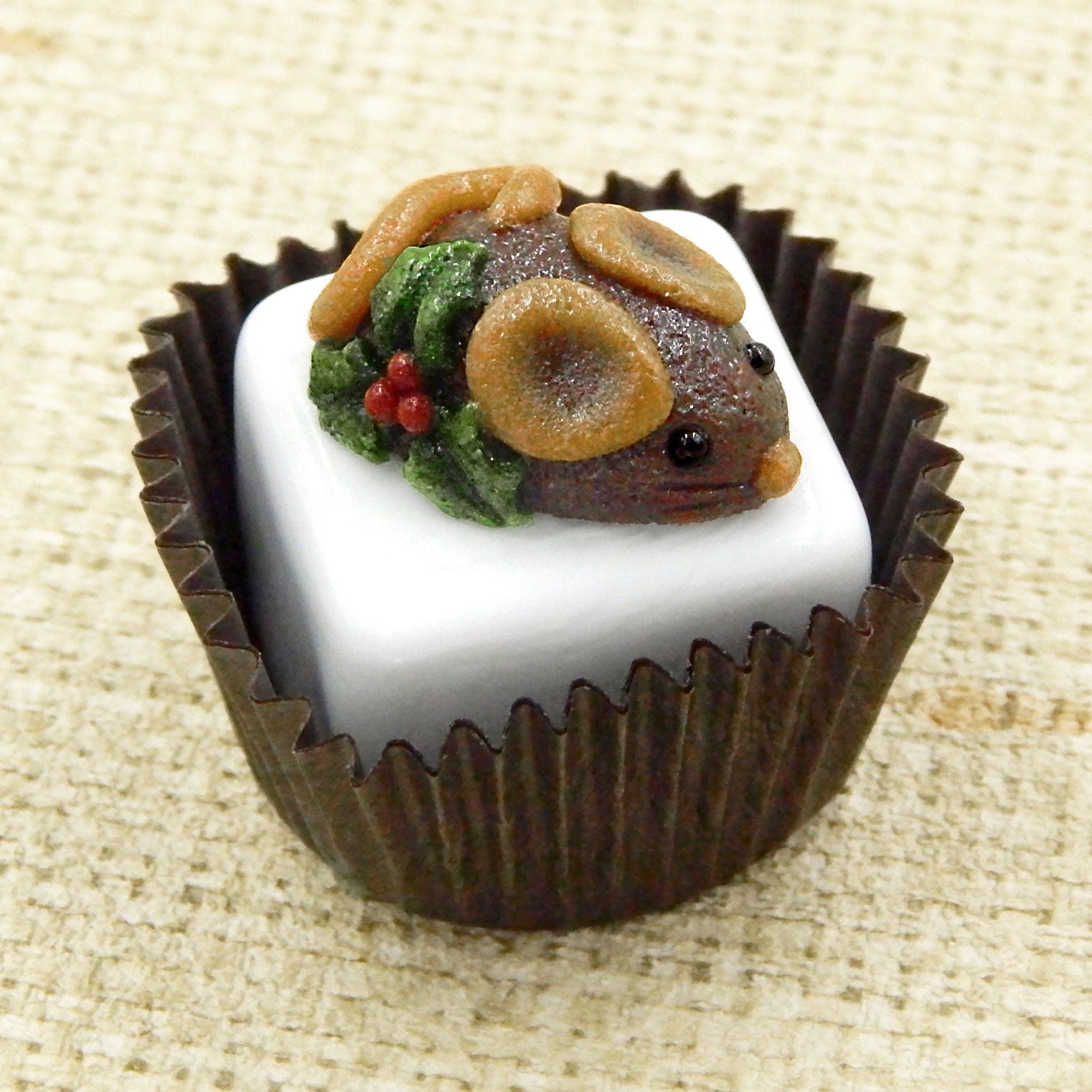 This listing is for 1 glass chocolate as seen in the first photo. The third photo shows an example of the slight variation between individual handmade chocolates. The final photos show a few of our additional Christmas mouse chocolates.