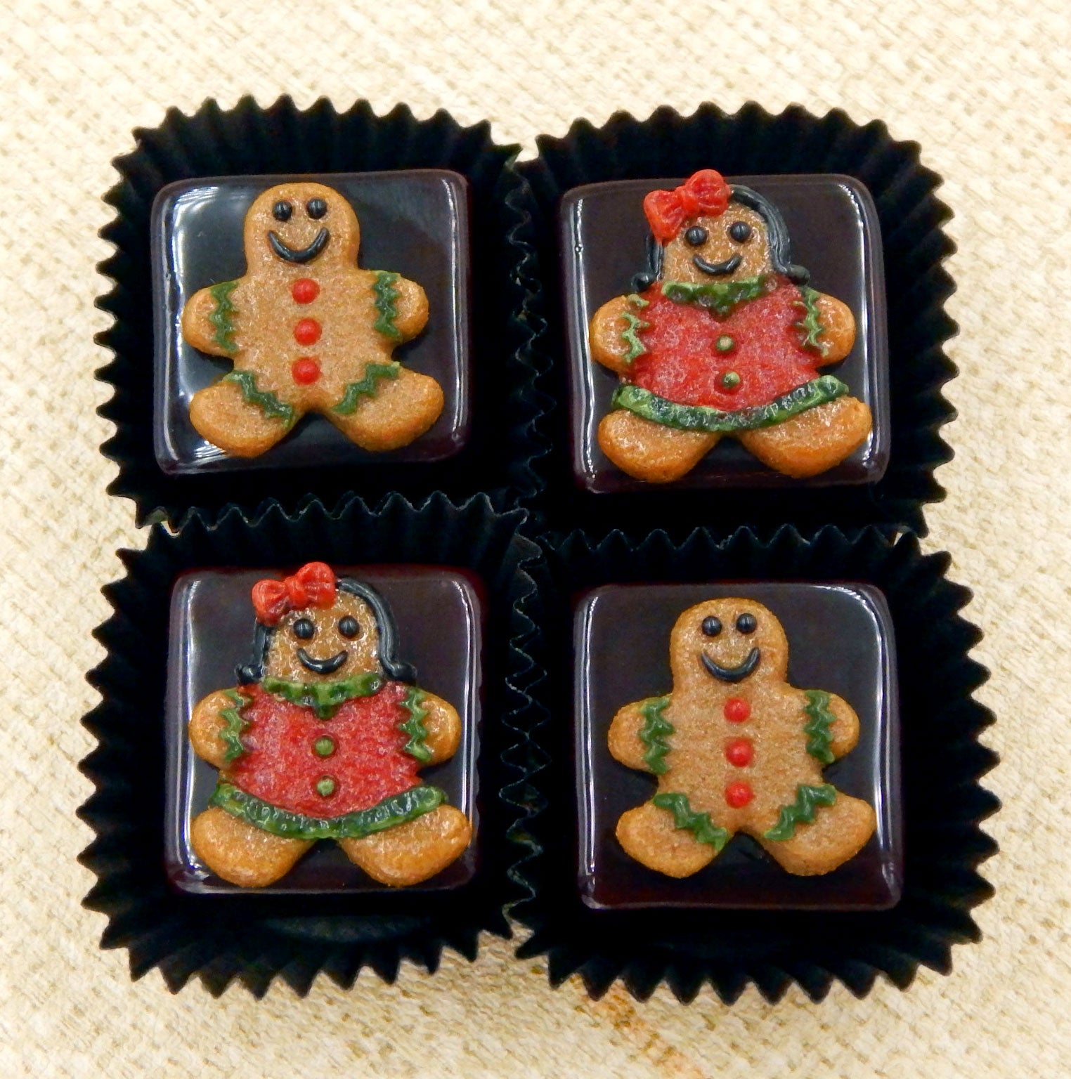 This listing is for 1 glass chocolate as seen in the first photo. The third photo shows an example of the slight variation between individual handmade chocolates. The final photos show a few of our additional Christmas gingerbread chocolates.