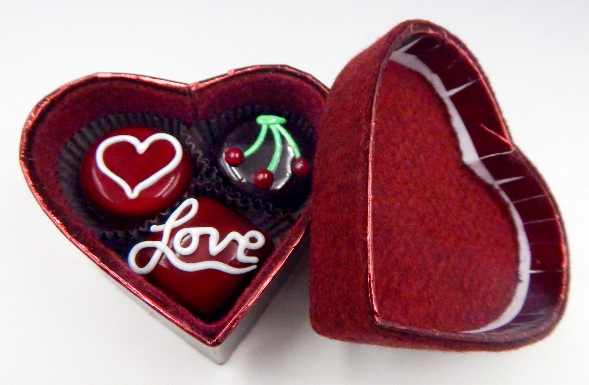 Red Heart Box of 3 Art Glass Chocolates (BxHH3-0020)