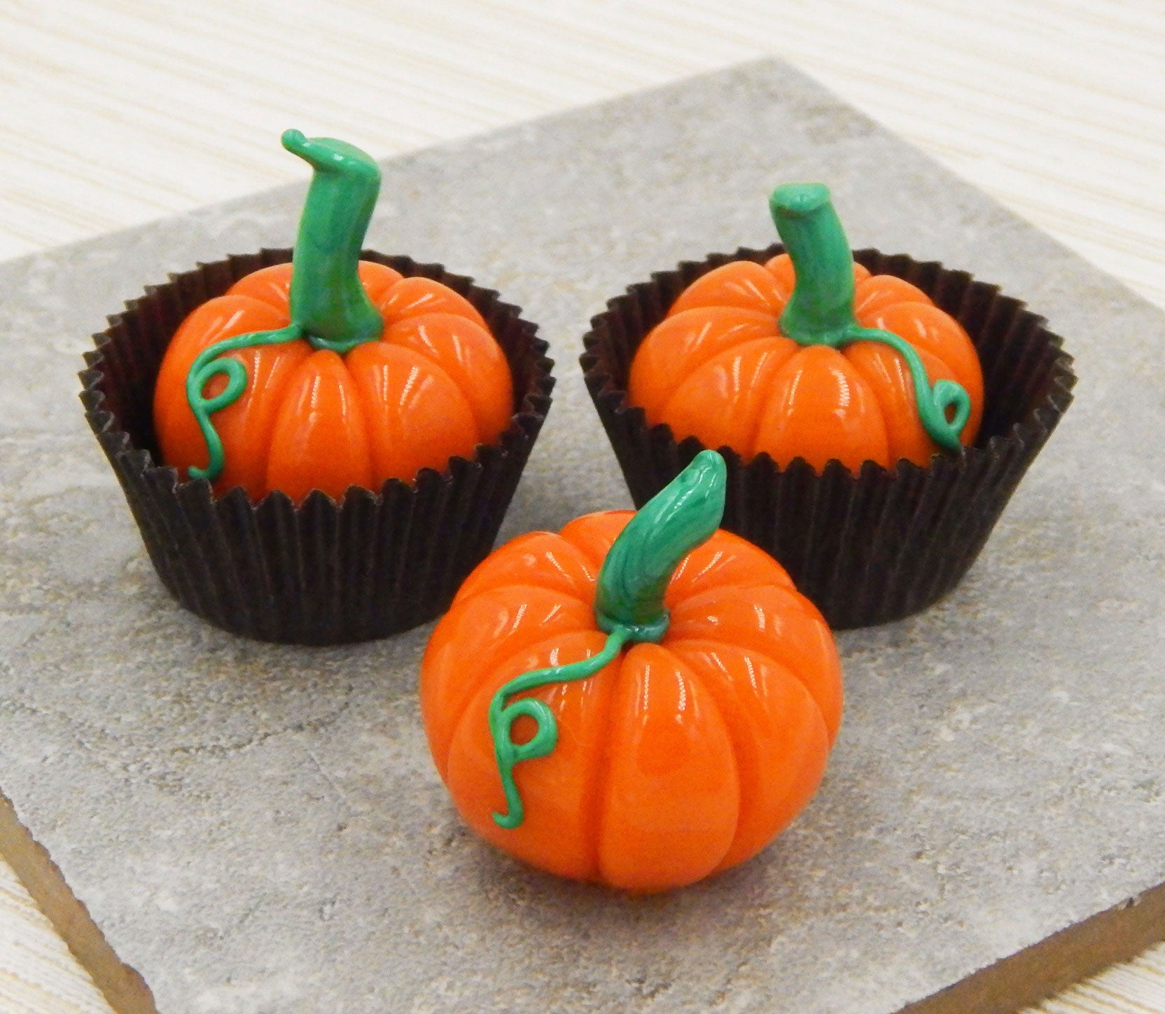 This listing is for 1 glass chocolate as seen in the first photo. The third photo shows an example of the slight variation between individual handmade chocolates. The last two pictures show additional variations of our glass pumpkins.