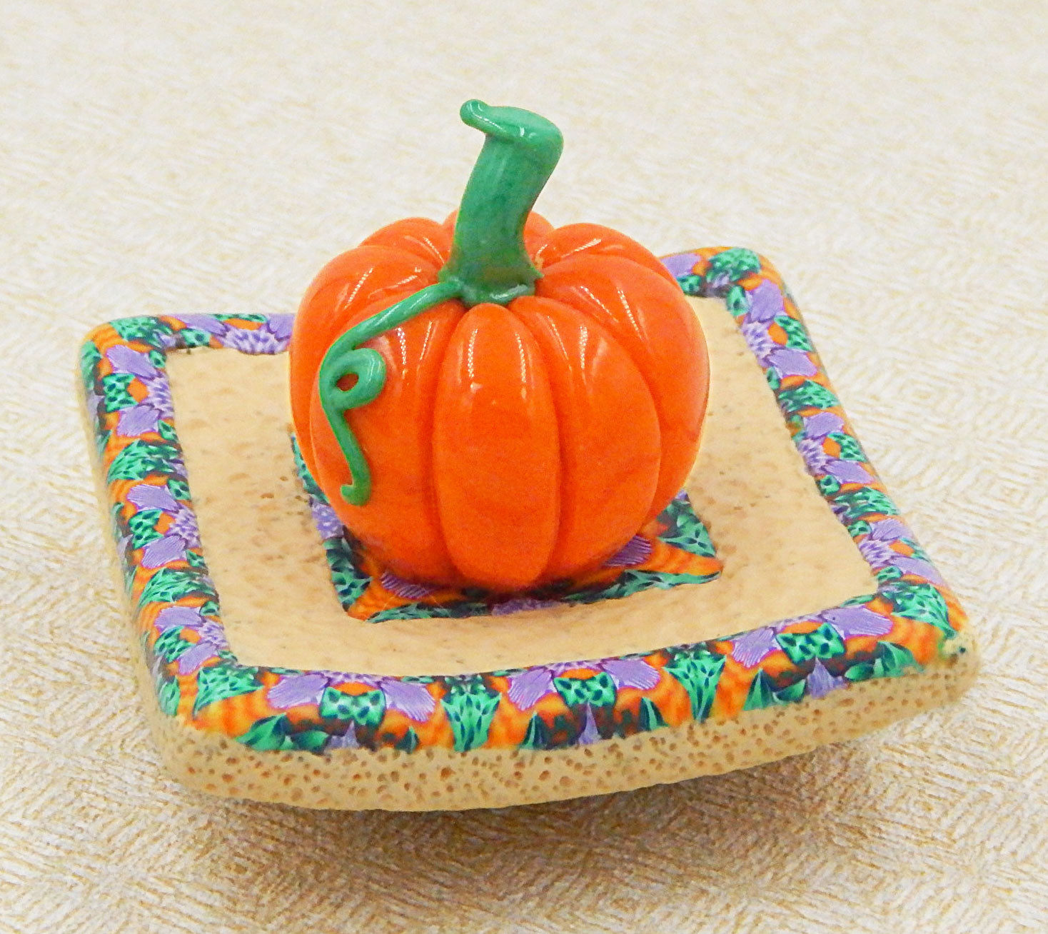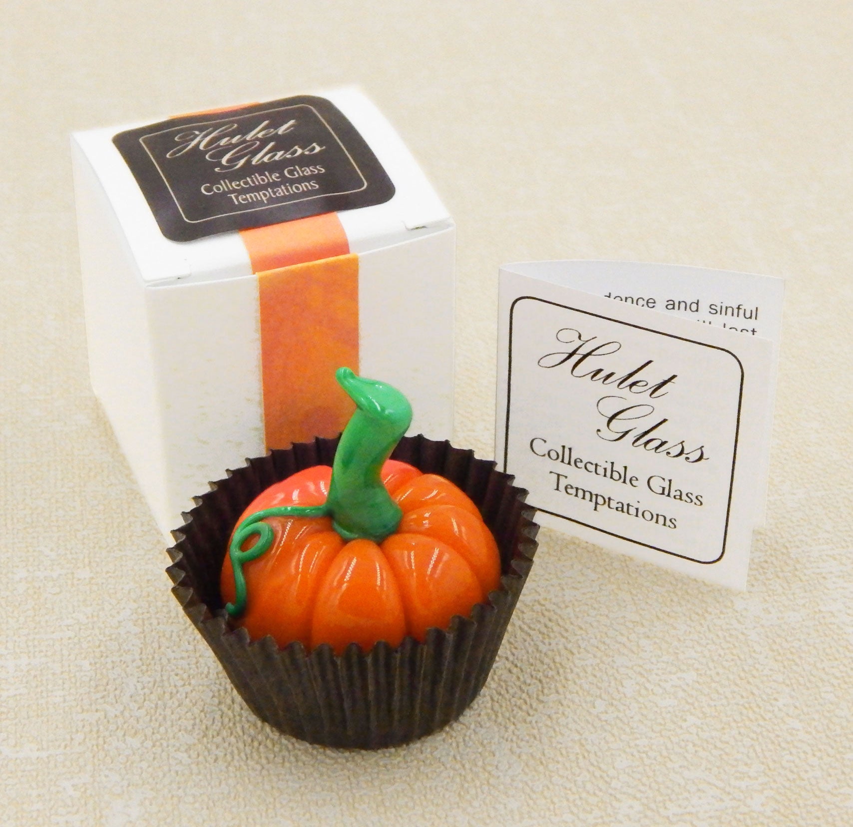 A handmade collectible solid glass pumpkin chocolate created from colorful glass utilizing pate de verre and flameworking techniques. Meticulous attention to detail has gone into the construction of each of our pieces to enhance its appeal and collectibility.