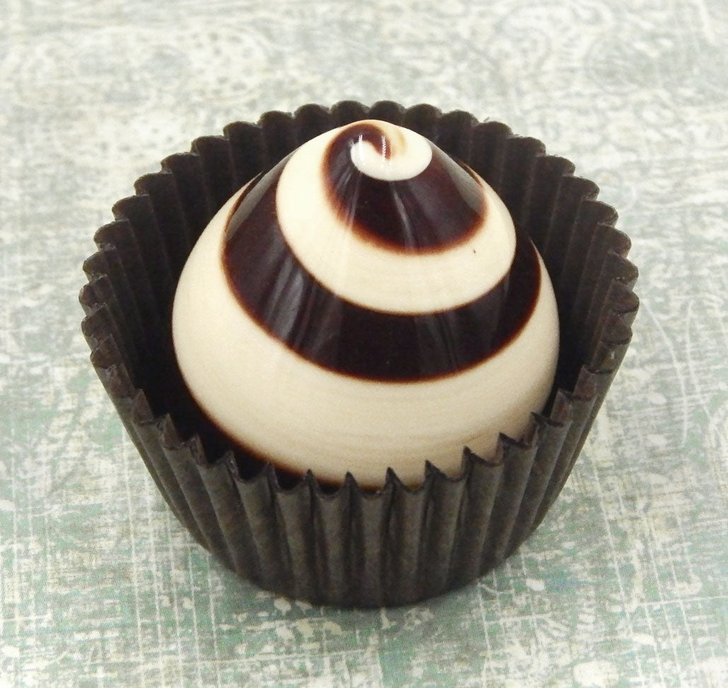 A handmade collectible solid glass swirl of dark chocolate & vanilla created from colorful glass utilizing flameworking techniques. Meticulous attention to detail has gone into the construction of each of our pieces to enhance its appeal and collectibility.