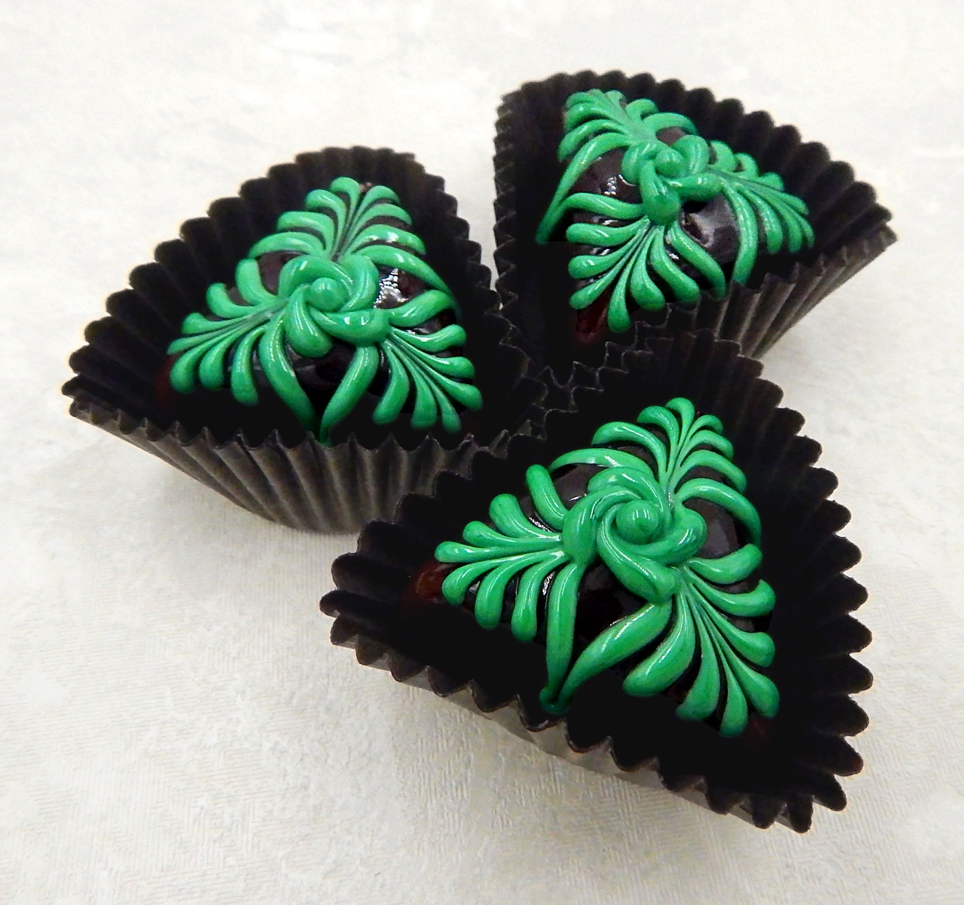 This listing is for 1 glass chocolate as seen in the first photo. The third photo shows an example of the slight variation between individual handmade chocolates. The final photo shows an assortment of chocolates from our St. Patrick's Day Collection.