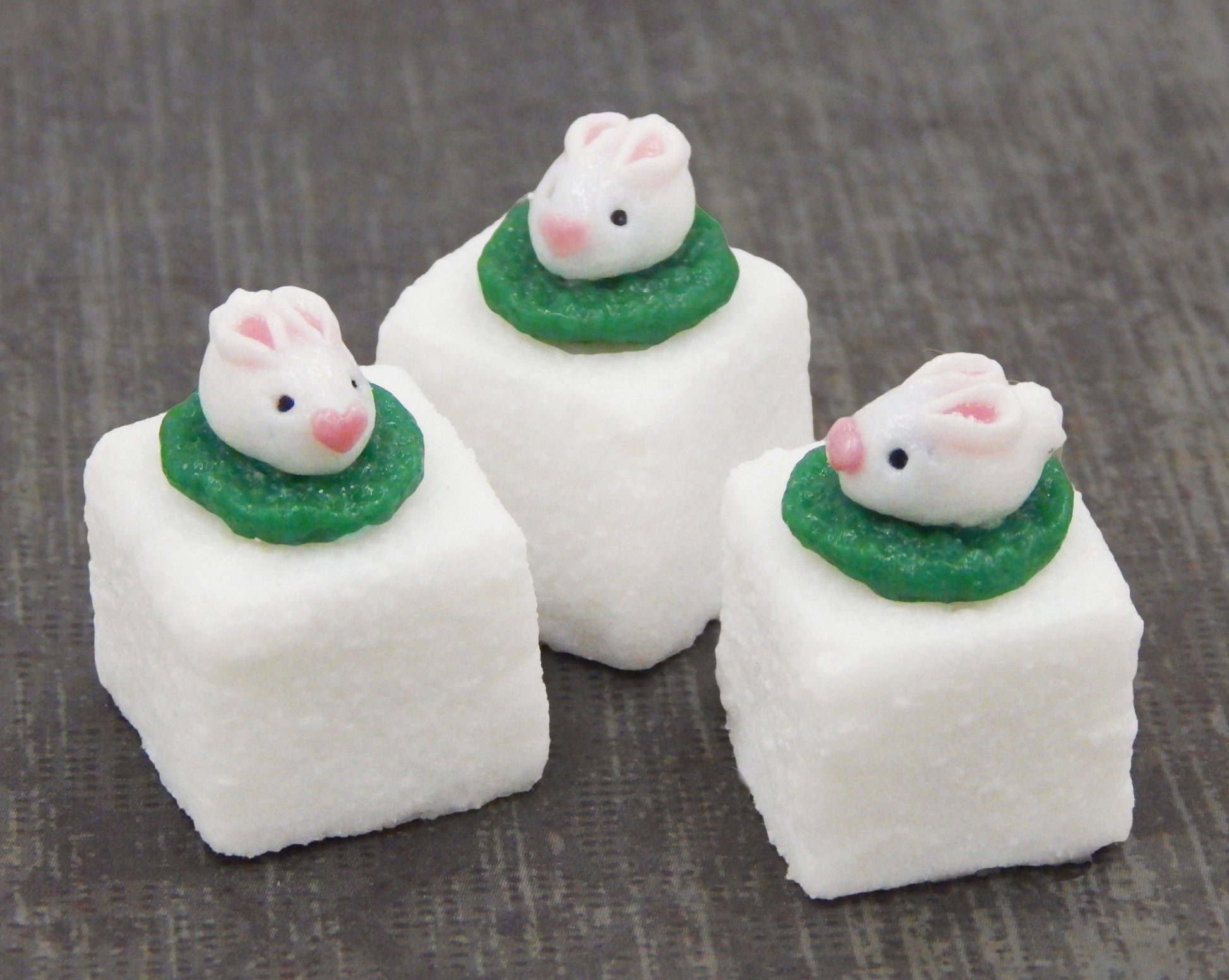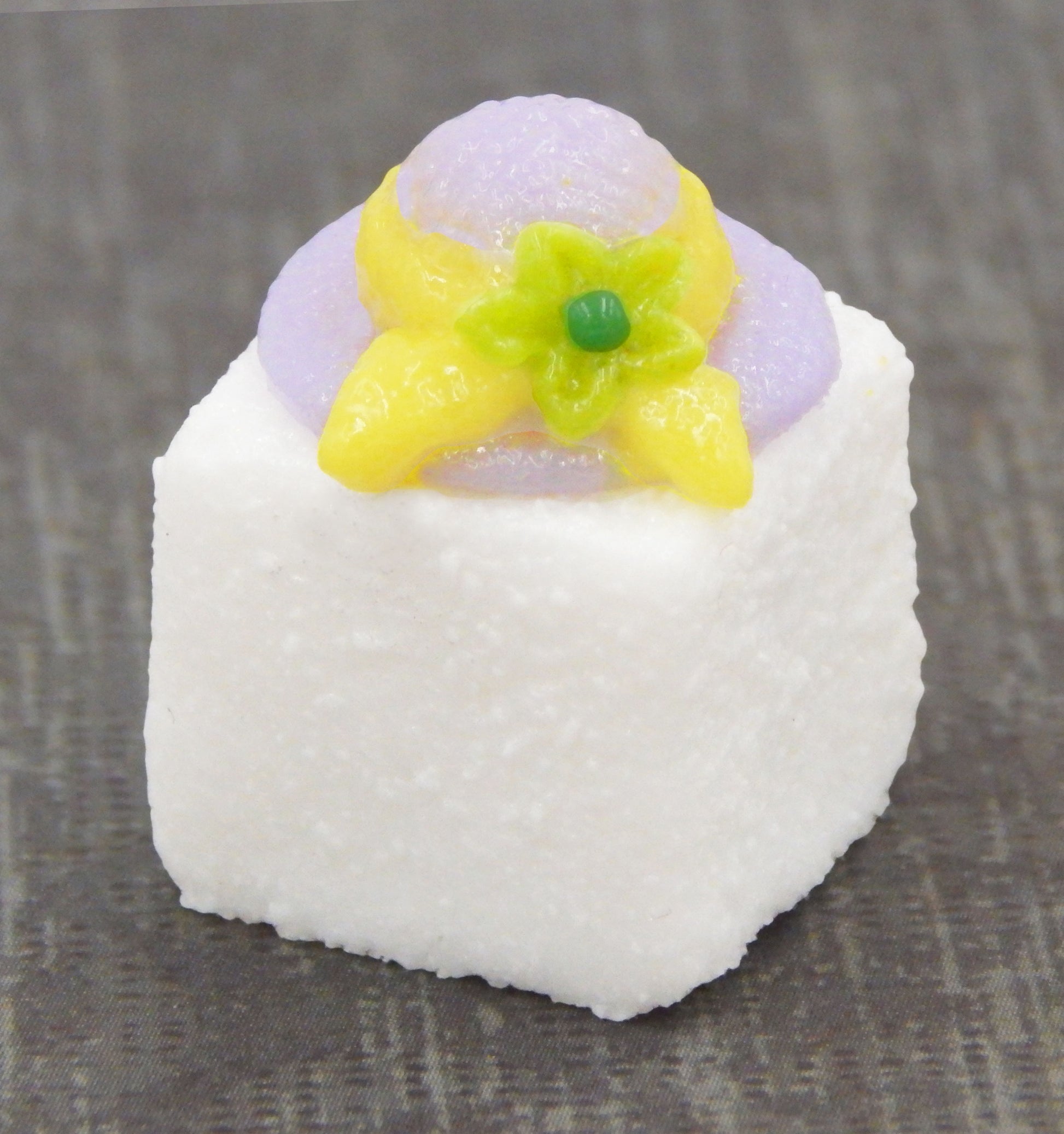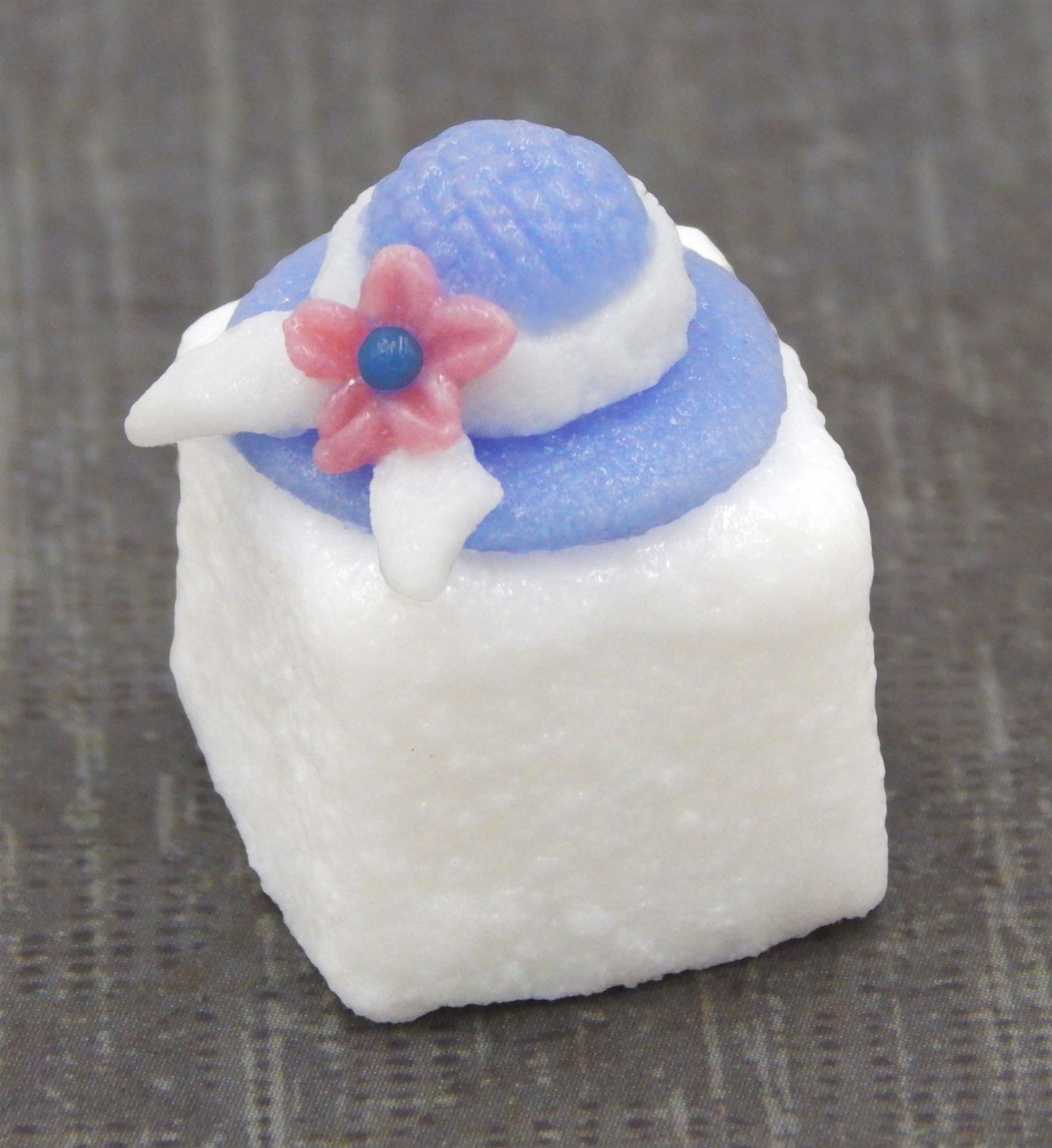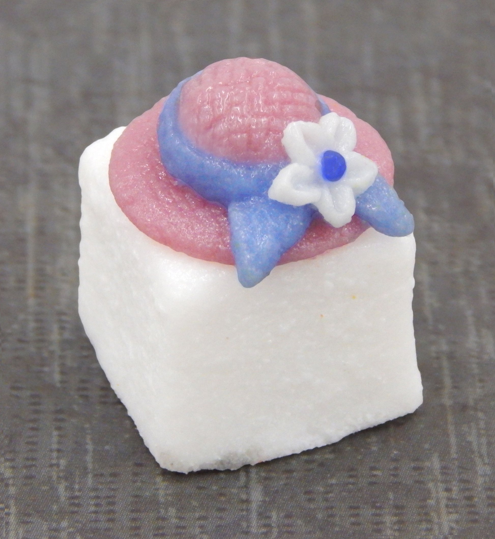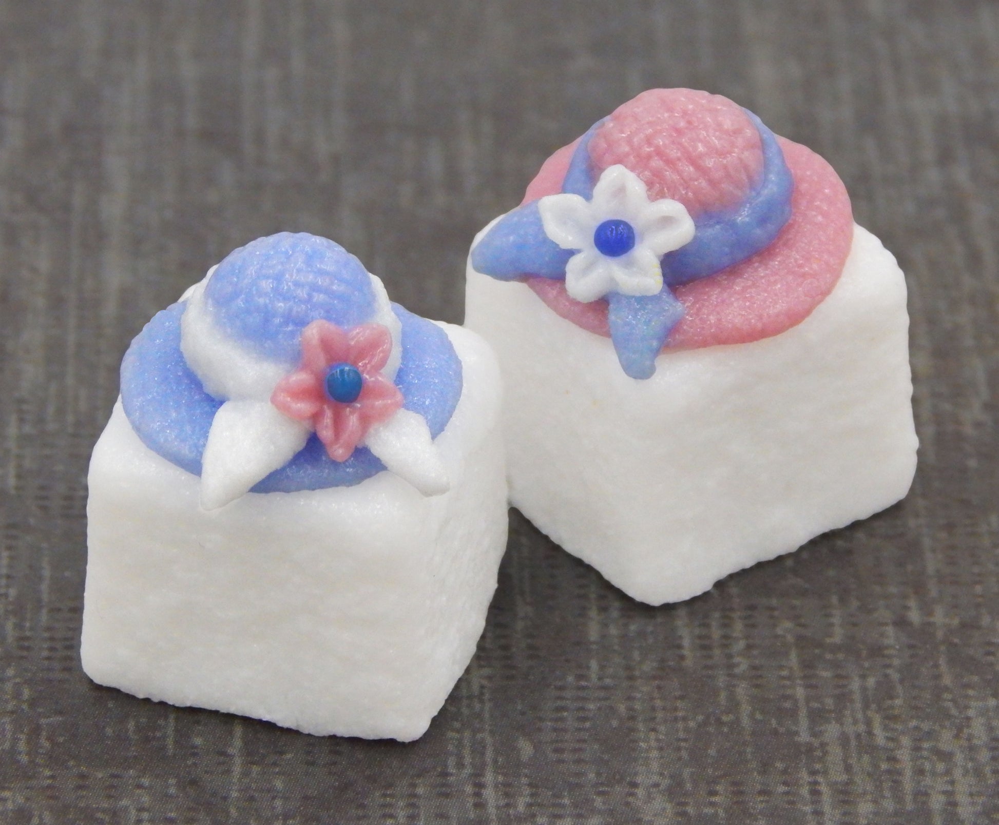 These handmade collectible solid glass sugar cubes with little springtime treats on top are created from finely ground colored glass powders using variations of the centuries old technique of pate de verre. Meticulous attention to detail has gone into the construction of each of our pieces to enhance its appeal and collectibility.