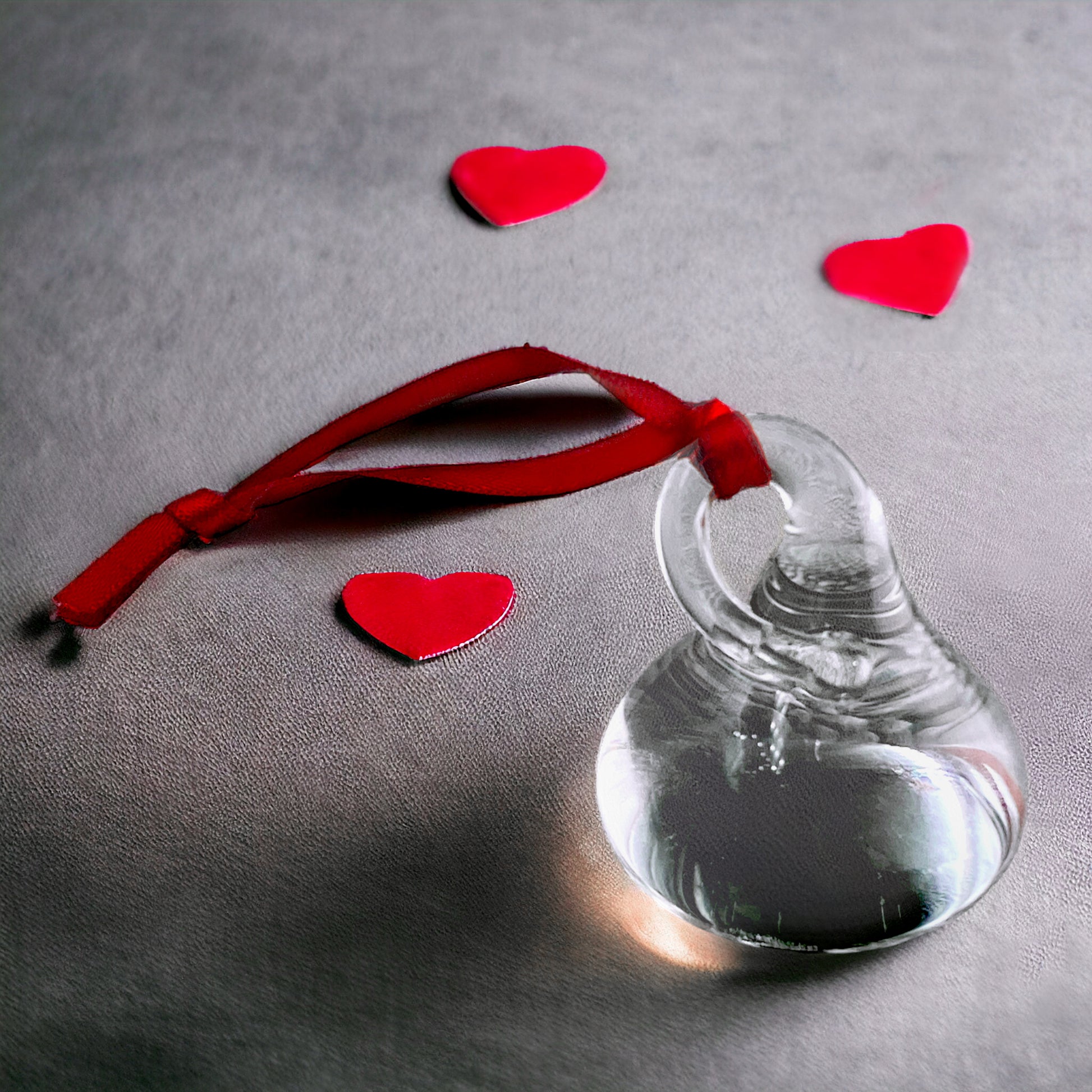 A collectible signed & dated solid glass chocolate drop, elegantly packaged in a gift box, crafted from transparent glass using flameworking techniques. Each chocolate drop includes a top loop, allowing for the attachment of a vibrant ribbon or necklace chain.