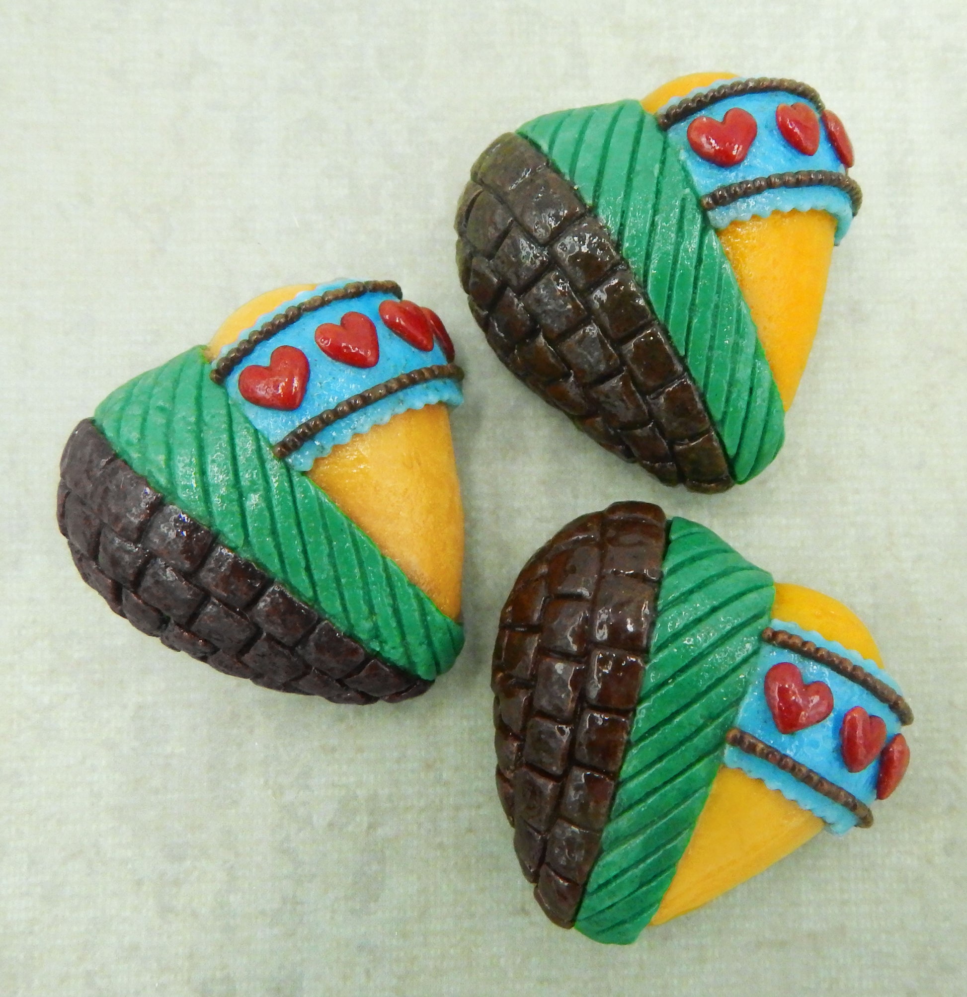 This collectible solid glass petit four heart with patterned texture and 4 little red hearts arrayed on one shoulder and is created from finely ground colored glass powders using variations of the centuries old technique of pate de verre. Meticulous attention to detail has gone into the construction of each of our pieces to enhance its appeal and collectibility.