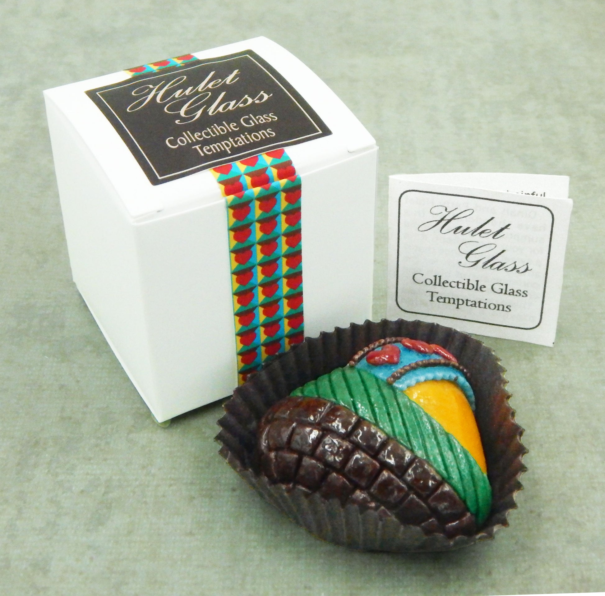 This inedible petit four is from our 'Hearts & Flowers Collection' and is just one of our many delectible treats. We design our art glass delicacies to evoke memories of innocence, love and happy times. These pieces are created to tease, seduce, tempt and delight. Use them to create a unique display in a favorite heirloom dish or cabinet for your home or office. They are also perfect and thoughtful gifts for yourself or your friends.