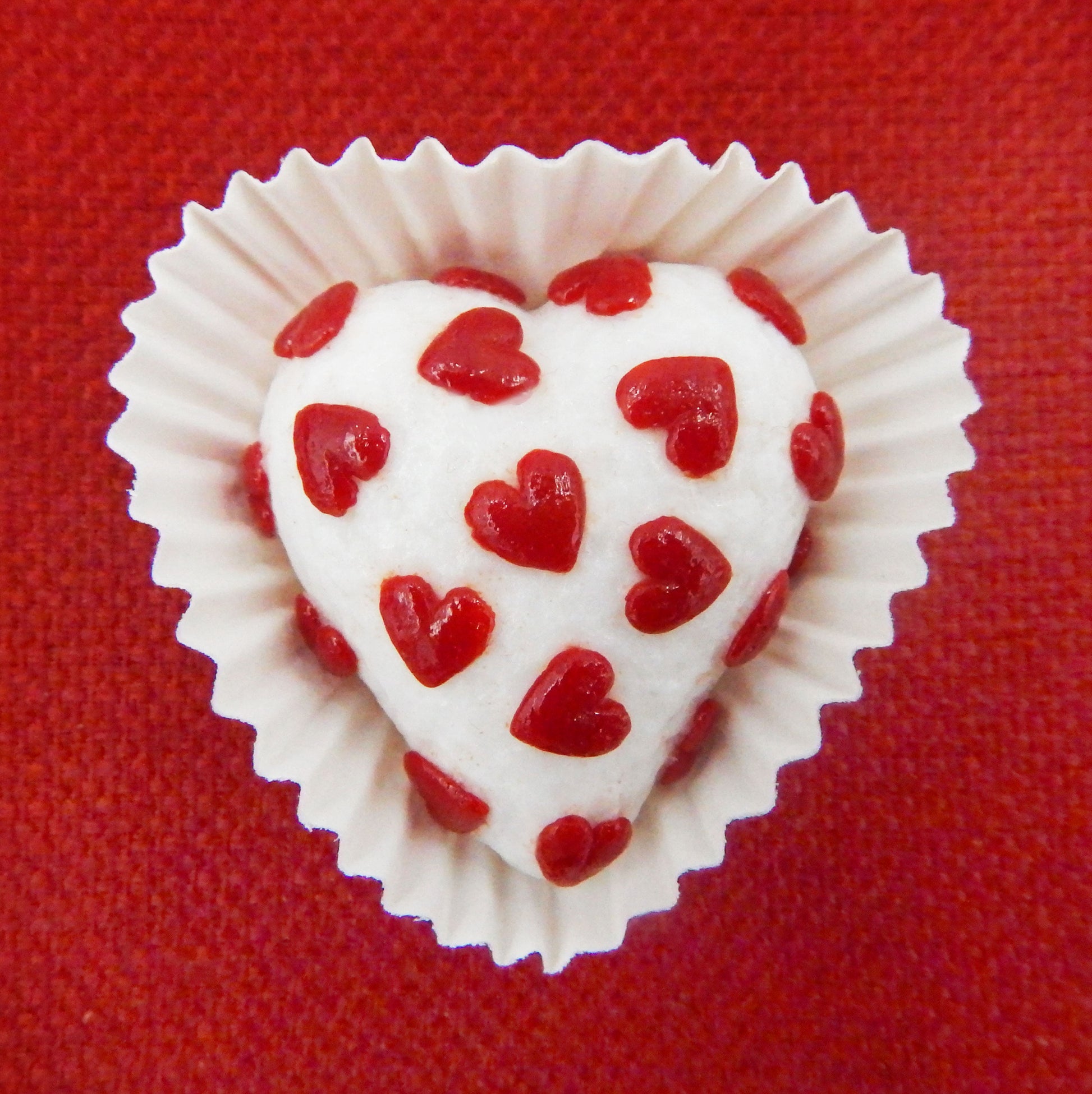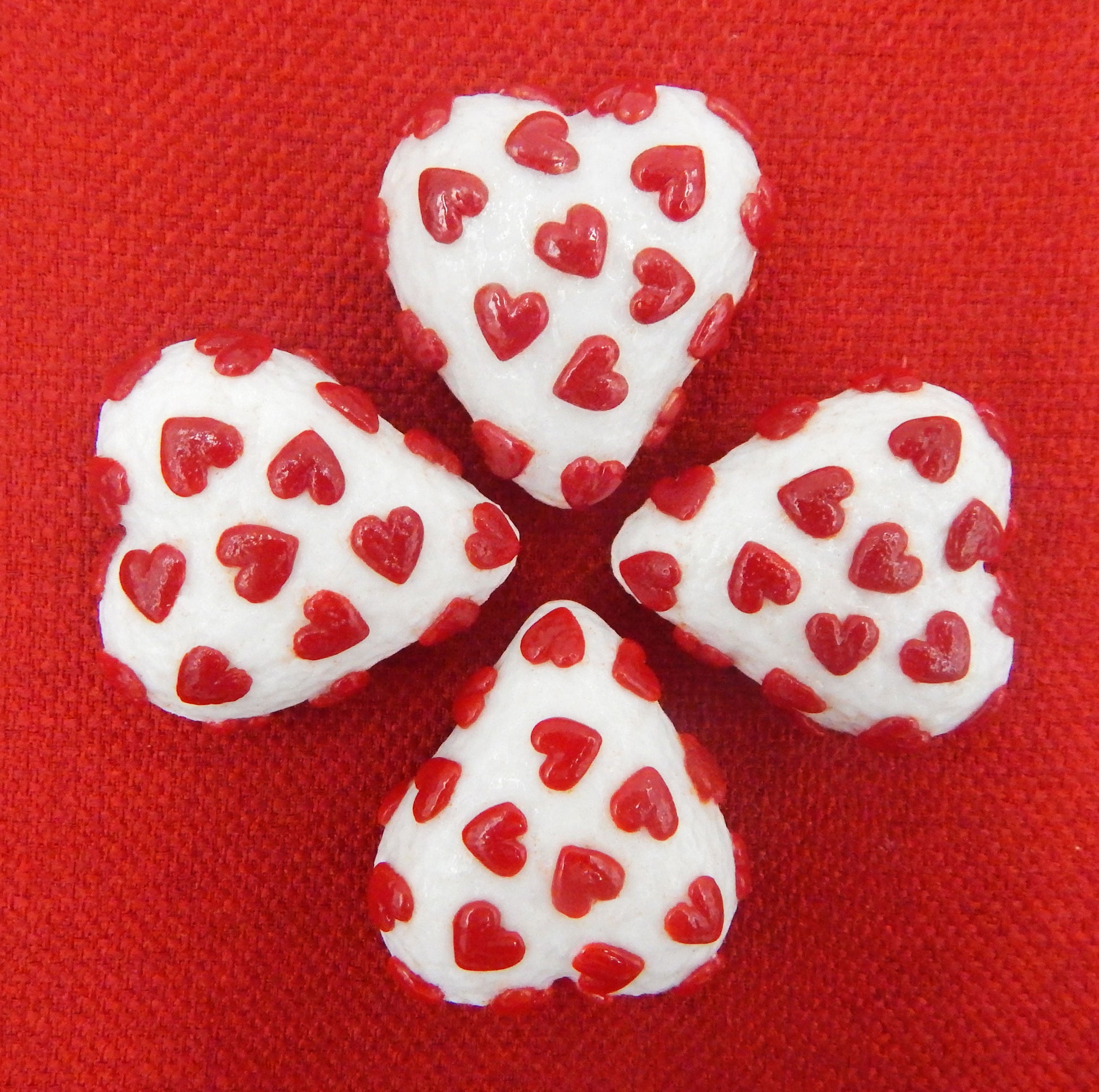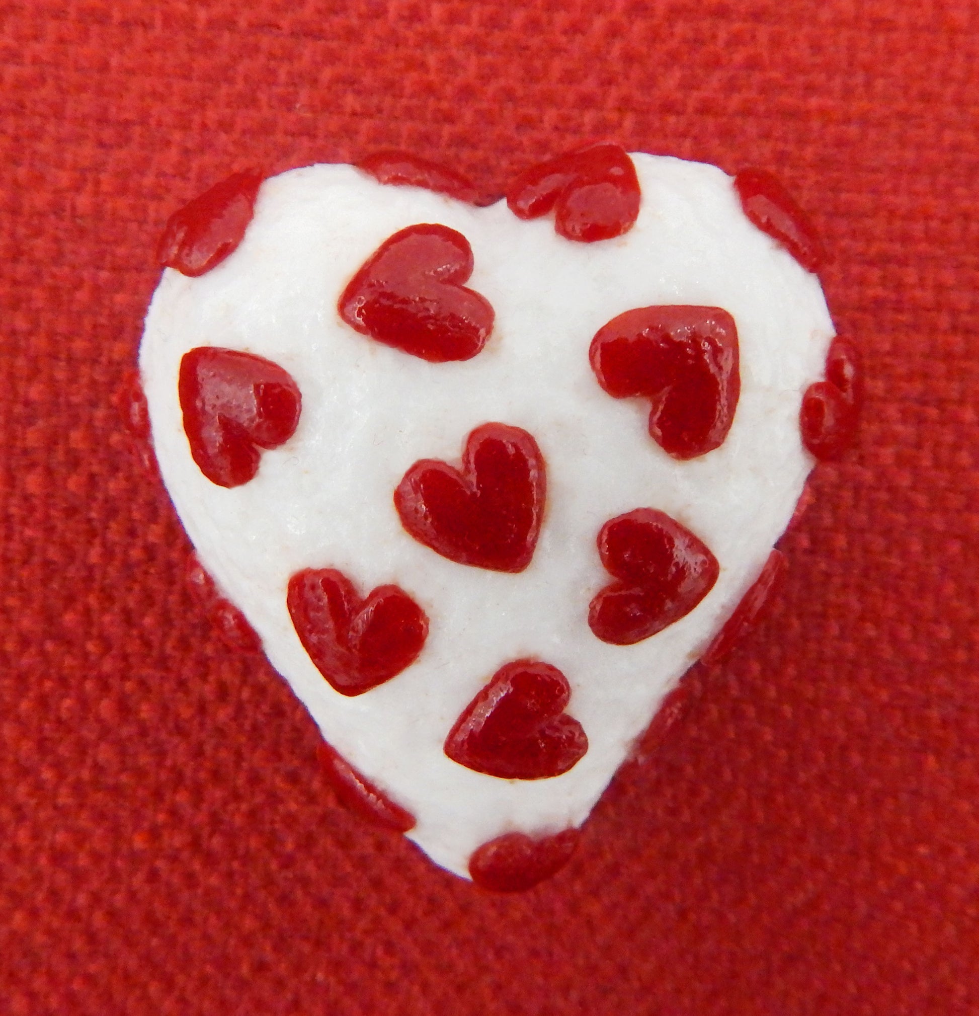 Glass Petit Four Heart ~ White with Red Hearts (HRT11-OO1WH)