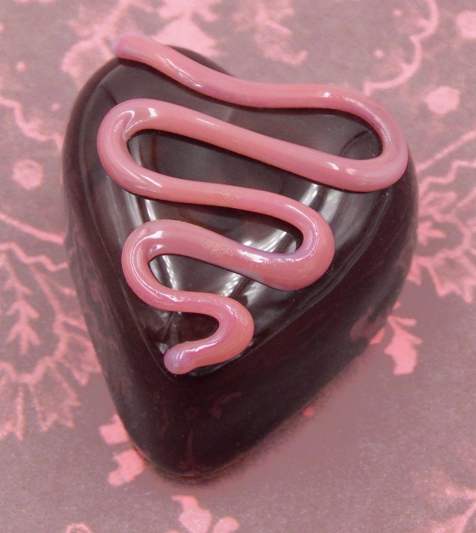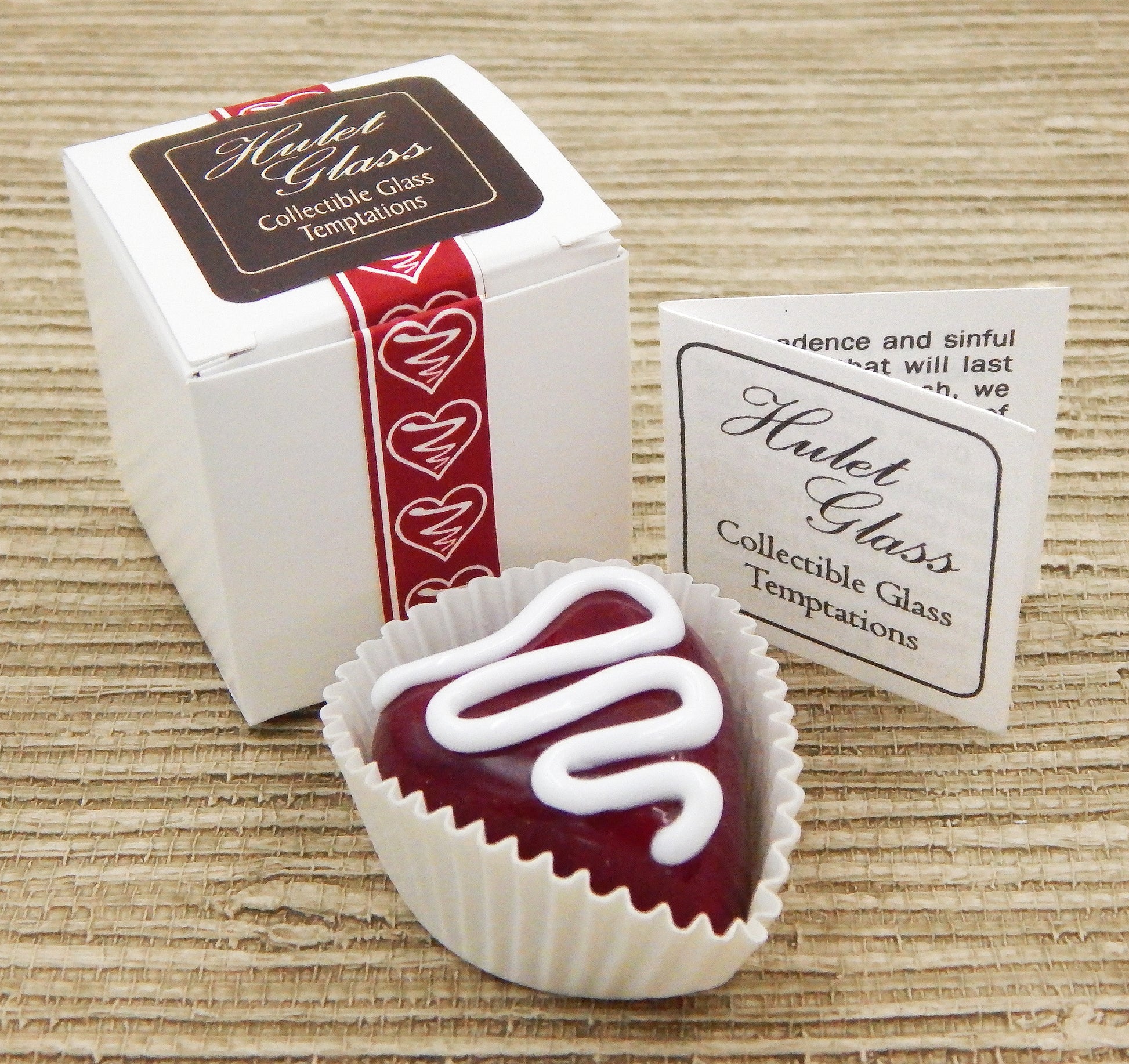 Handmade collectible solid glass heart-shaped chocolates each with a sweep of yummy frosting on top created from colorful glass utilizing flameworking techniques. Meticulous attention to detail has gone into the construction of each of our pieces to enhance its appeal and collectibility.