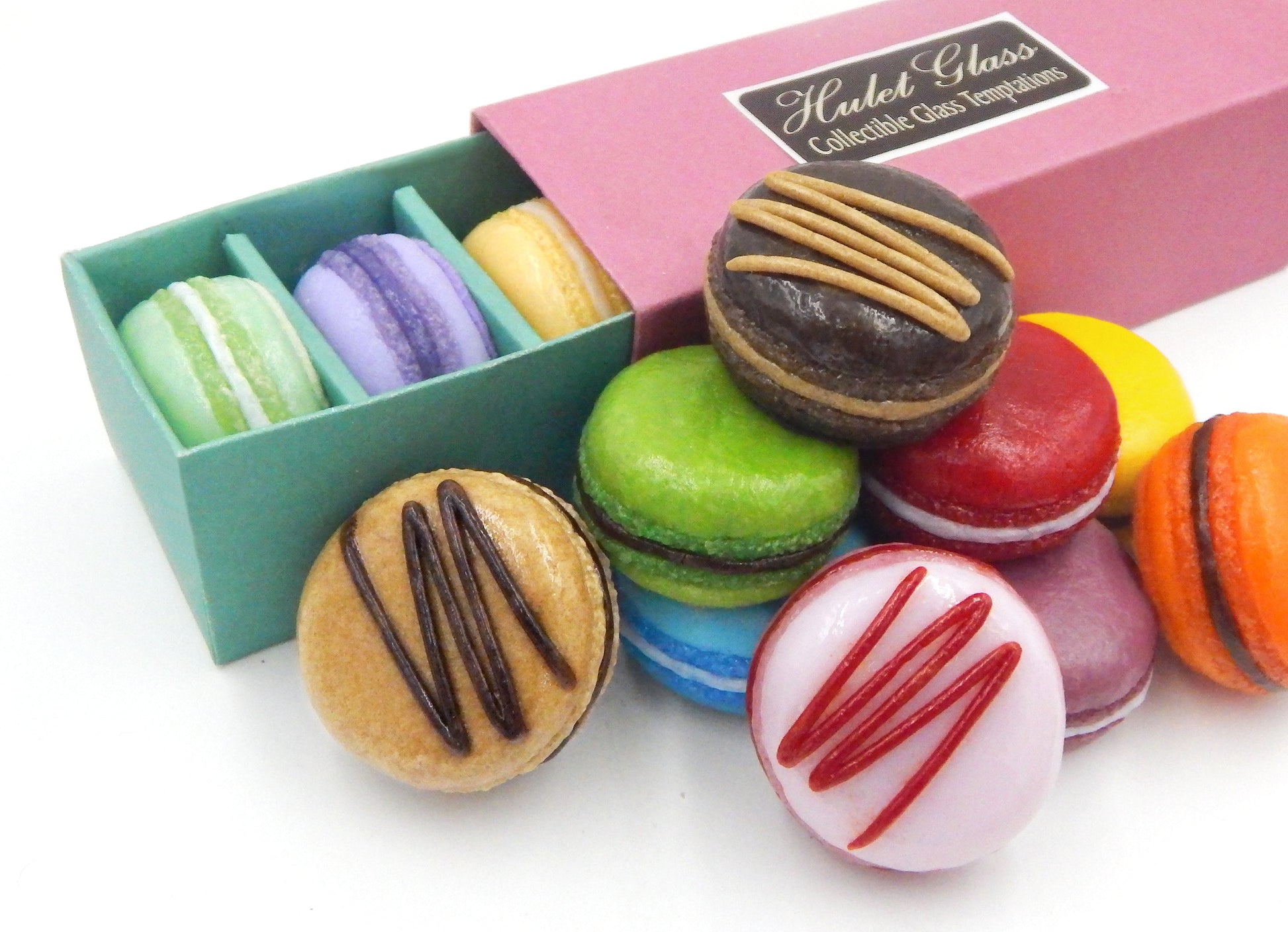 These inedible confections are from our 'Macaron Collection' and are among our many delectable treats. We design our art glass delicacies to evoke memories of innocence, love and happy times. These pieces are created to tease, seduce, tempt and delight. Use them to create a unique display in a favorite heirloom dish or cabinet for your home or office. They are also perfect and thoughtful gifts for yourself or your friends.