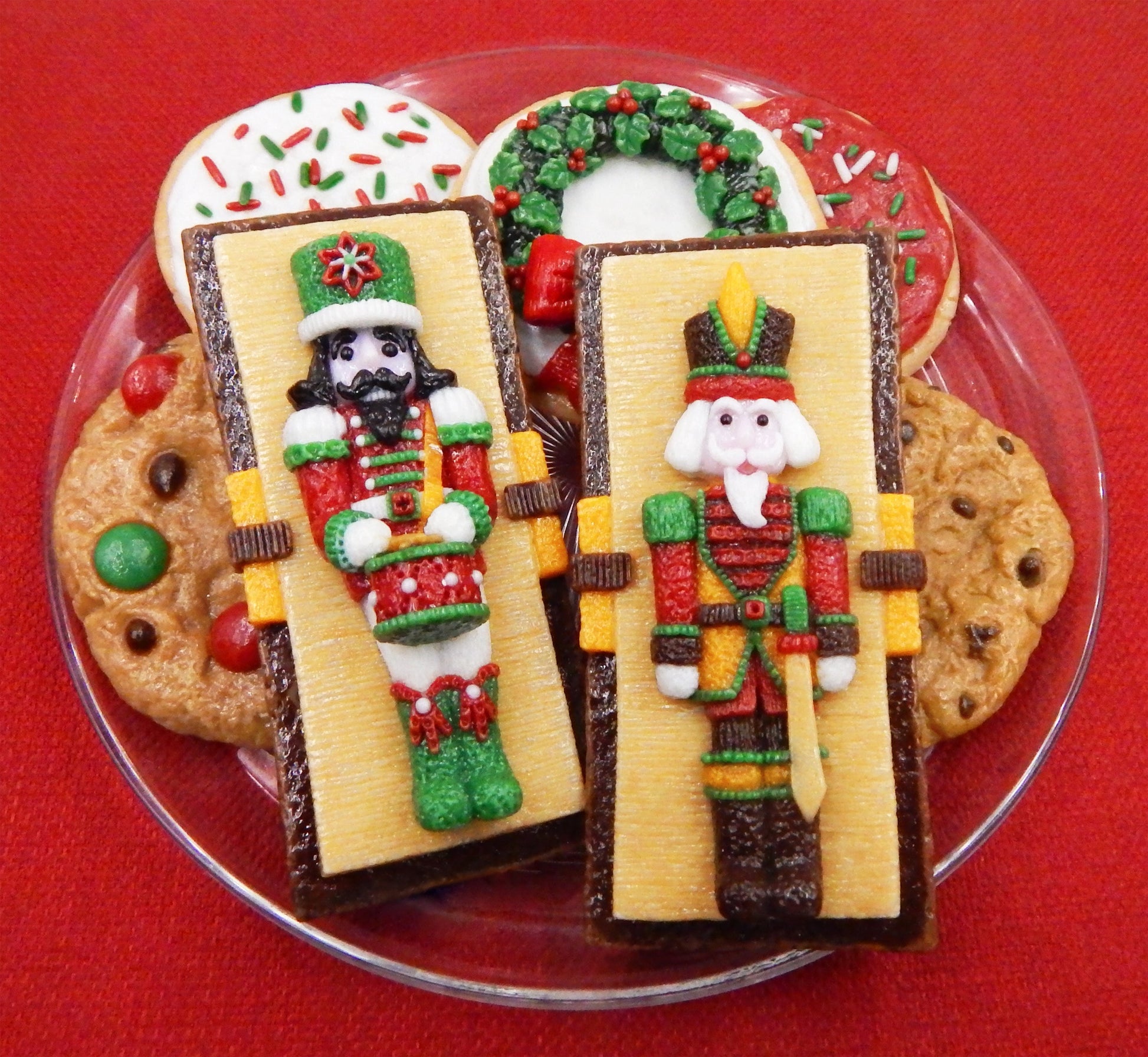 This inedible glass cookie is from our 'Cookie Collection' and is just one of our many mouth-watering treats. We design our art glass delicacies to evoke memories of innocence, love and happy times. These pieces are created to tease, seduce, tempt and delight. Use them to create a unique display in a favorite heirloom dish or cabinet for your home or office. They are also perfect and thoughtful gifts for yourself or your friends. The Nutcracker Drummer cookie is packaged with a stand that allows it to be displayed lying flat on a cookie dish or upright as part of your Christmas decor.