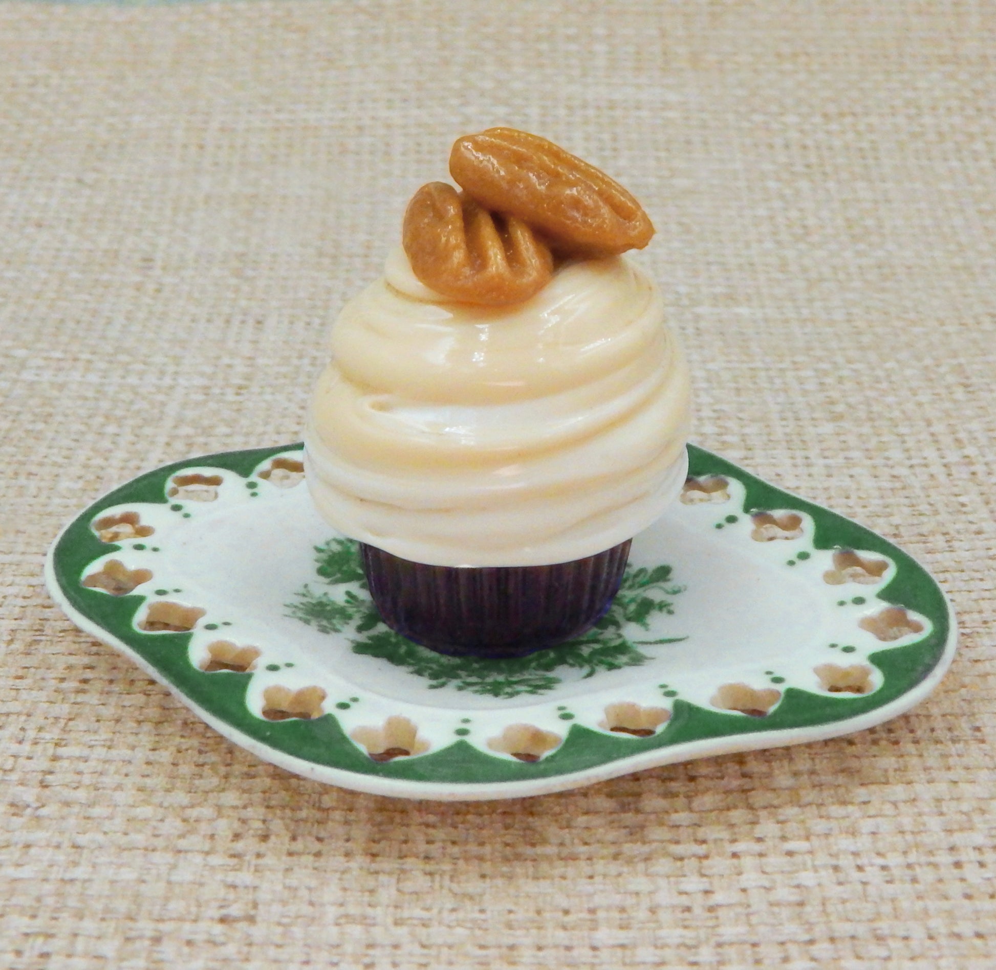 A handmade collectible solid glass Pecan Mini Cupcake Truffle created from colorful glass utilizing flameworking techniques. Meticulous attention to detail has gone into the construction of each of our pieces to enhance its appeal and collectibility.