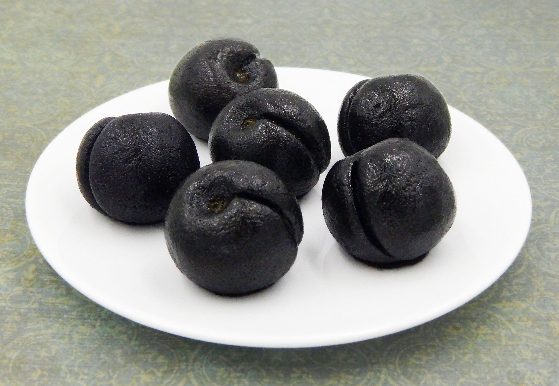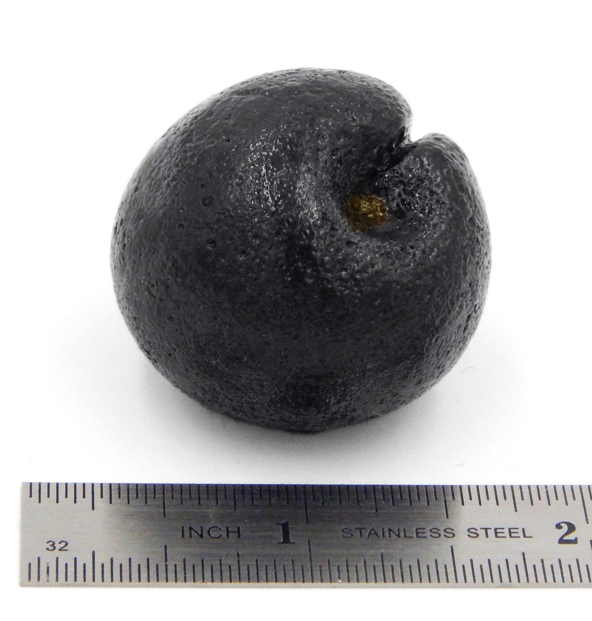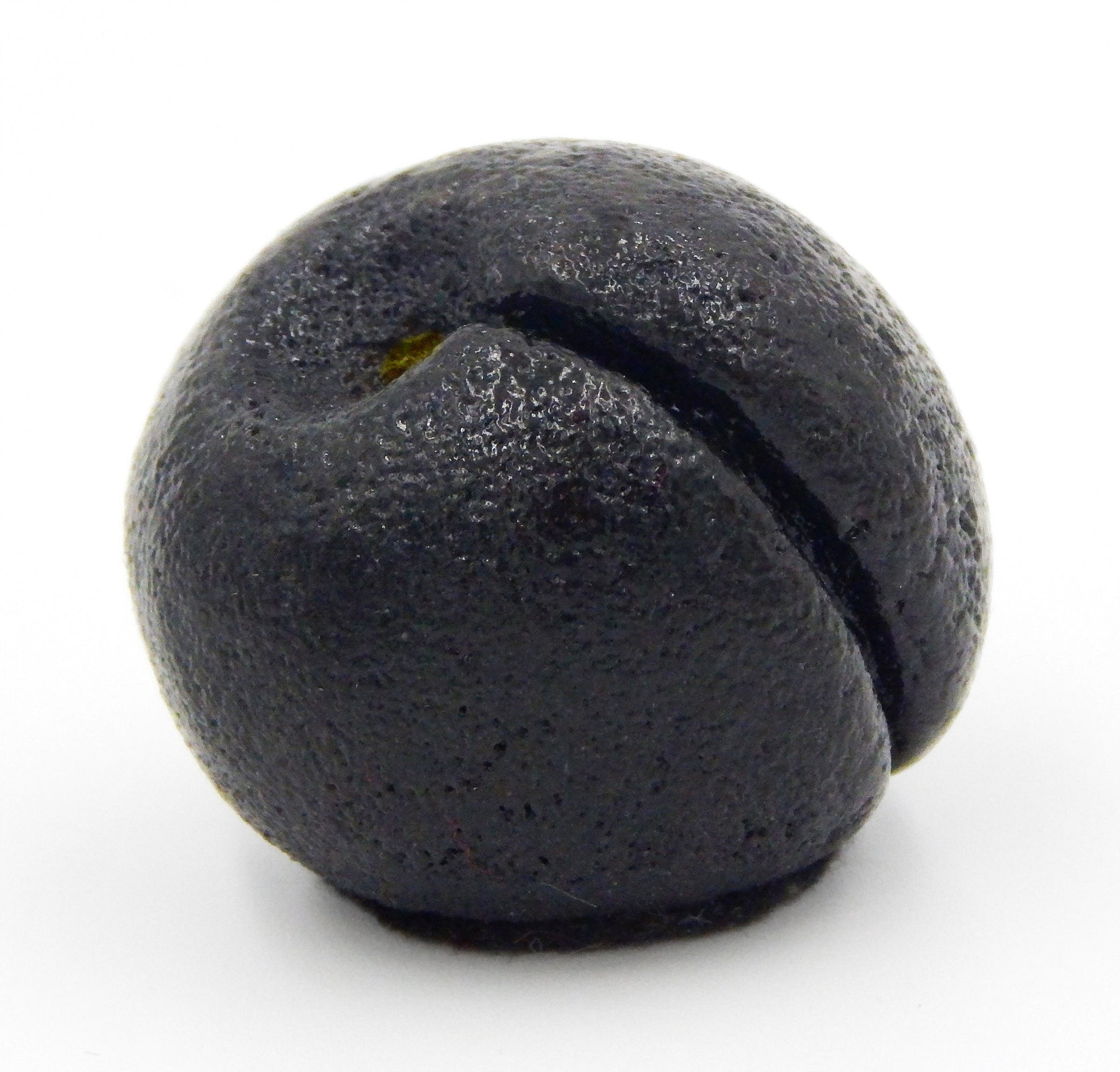 This collectible solid glass marzipan black plum is created from finely ground colored glass powders using variations of the centuries old technique of pate de verre. Meticulous attention to detail has gone into the construction of each of our pieces to enhance its appeal and collectibility.