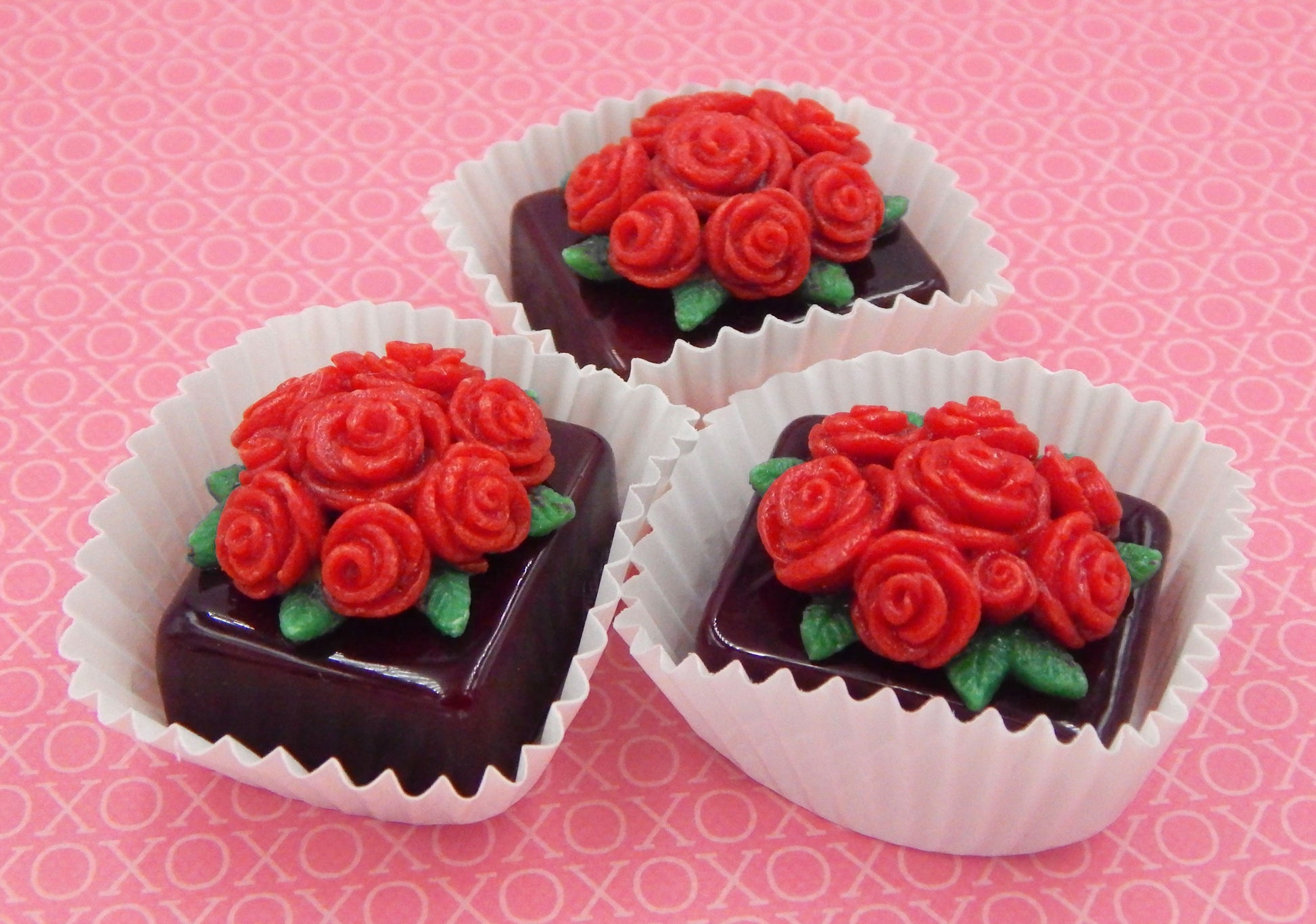 This listing is for 1 glass chocolate petit four in a white candy cup as seen in the first photo. The third photo shows an example of the slight variation between individual handmade chocolates. The final photo shows the rose bouquet with two of our little cupcake truffles.