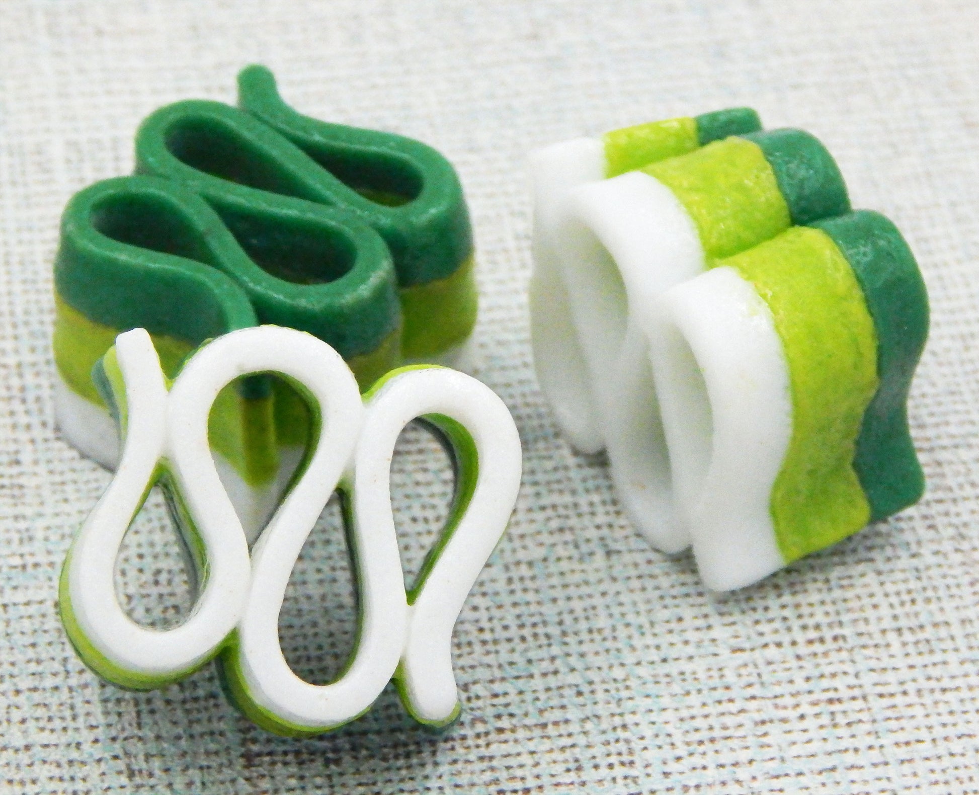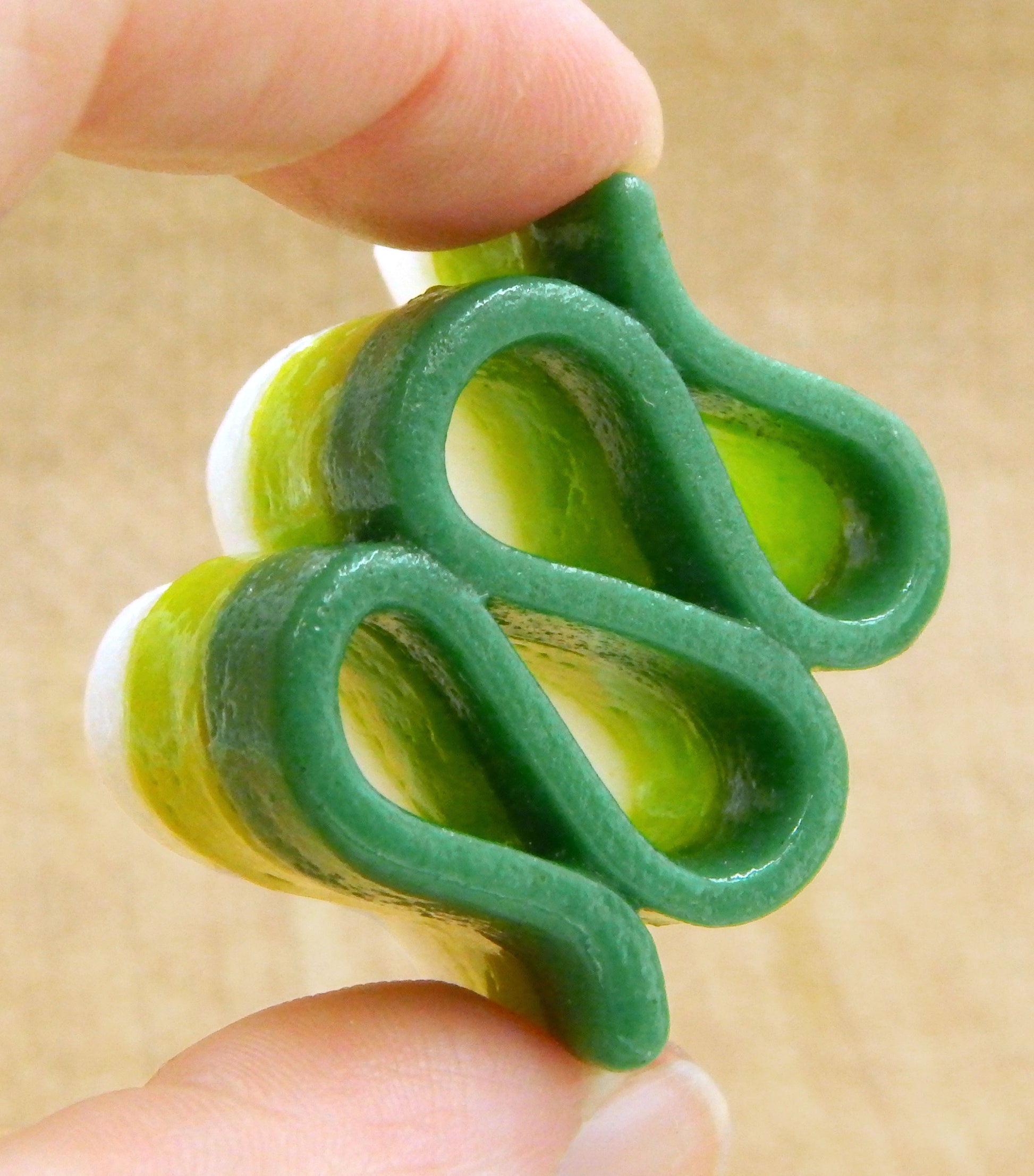 A handmade collectible solid glass piece of St. Patrick's Ribbon Candy created from colorful glass utilizing ancient pate de verre techniques. Meticulous attention to detail has gone into the construction of each of our pieces to enhance its appeal and collectibility.