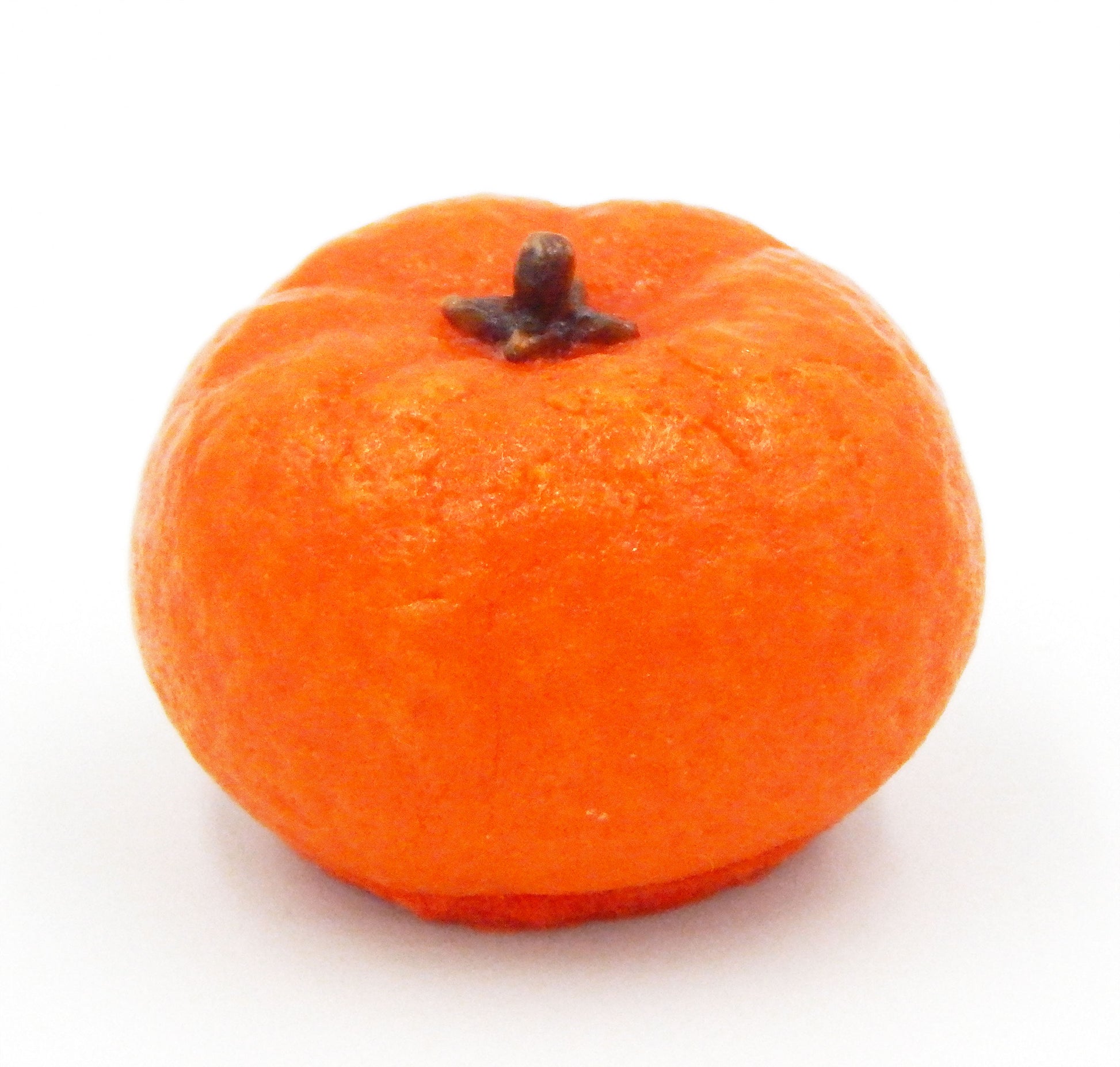 This collectible solid glass marzipan tangerine is created from finely ground colored glass powders using variations of the centuries old technique of pate de verre. Meticulous attention to detail has gone into the construction of each of our pieces to enhance its appeal and collectibility.