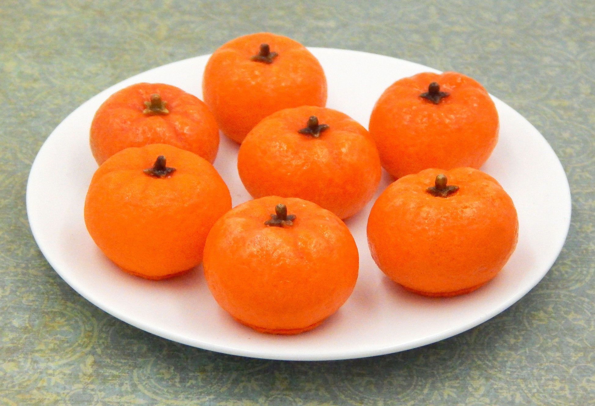 This listing is for 1 glass marzipan tangerine as seen in the first photo. The third photo shows an example of the slight variation between the individual handmade tangerines. The final photos show other of the glass goodies in our Marzipan Collection.