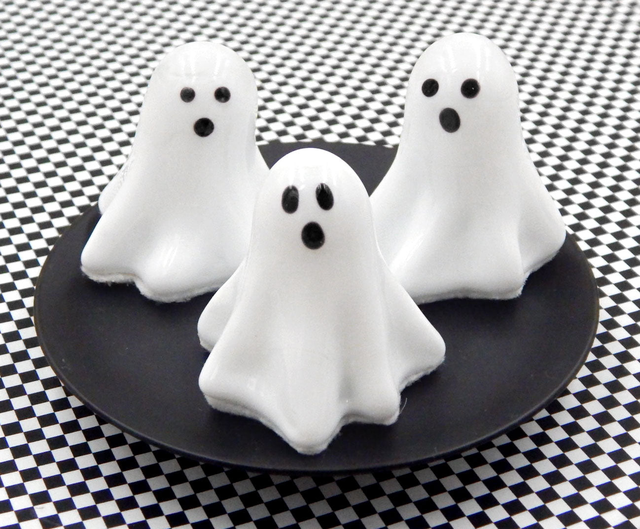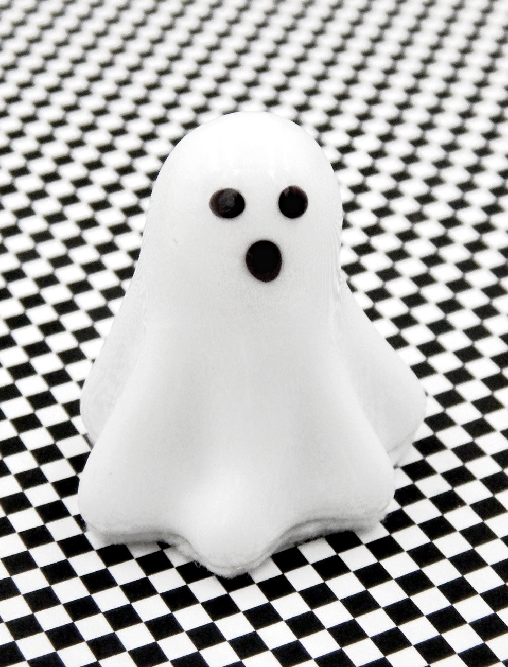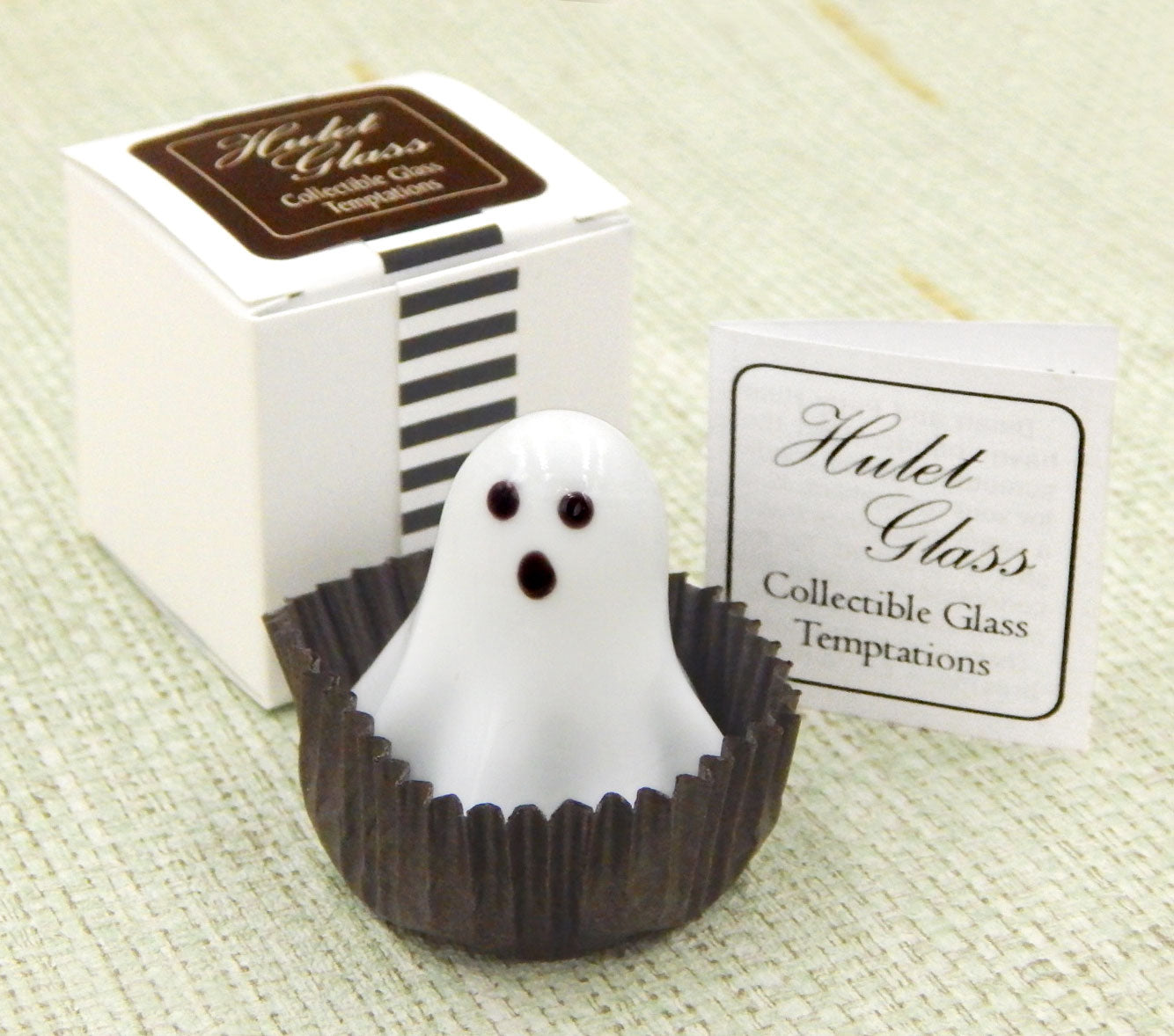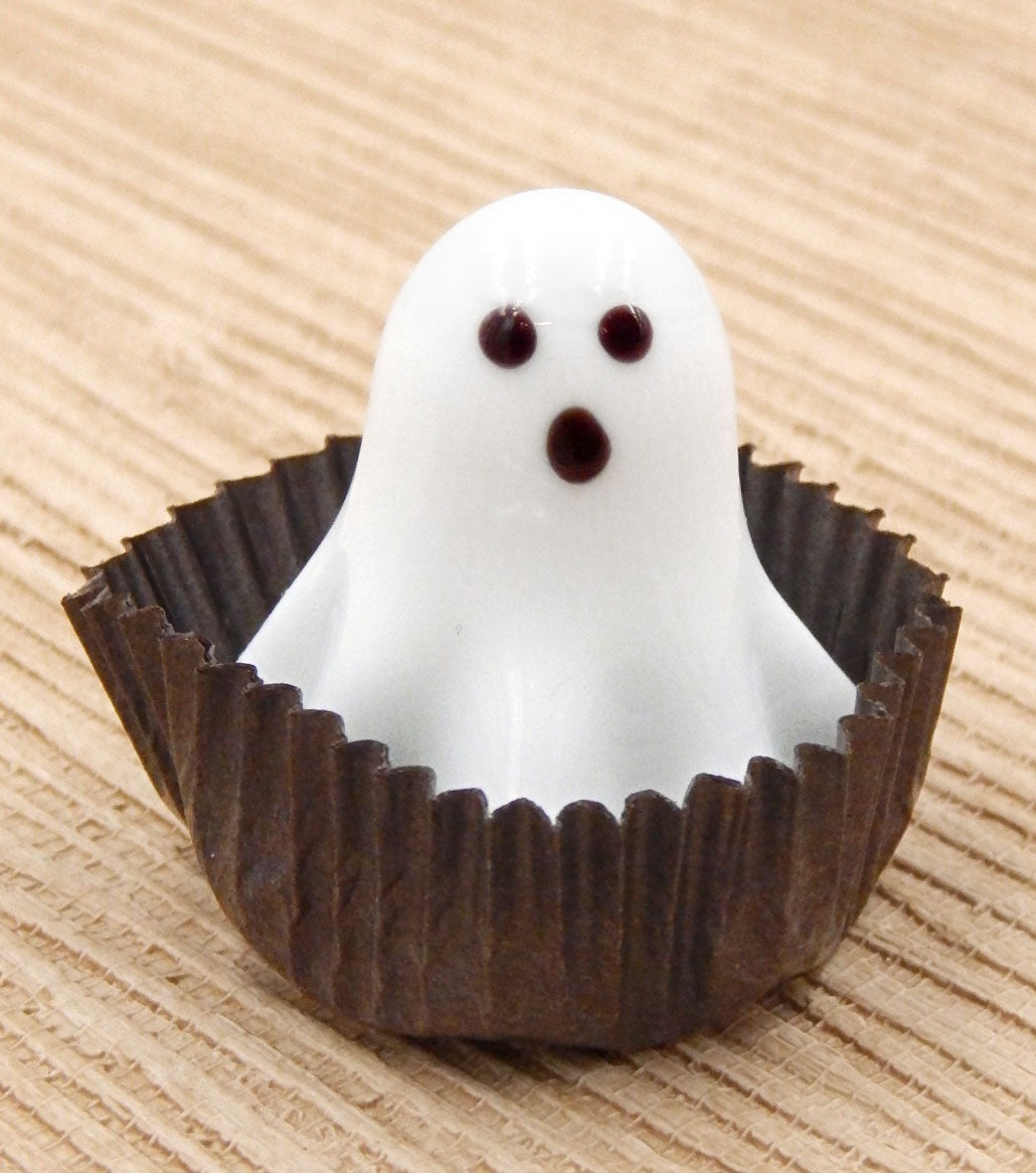 A handmade collectible solid glass white chocolate ghost created from colorful glass utilizing flameworking techniques. Meticulous attention to detail has gone into the construction of each of our pieces to enhance its appeal and collectibility.