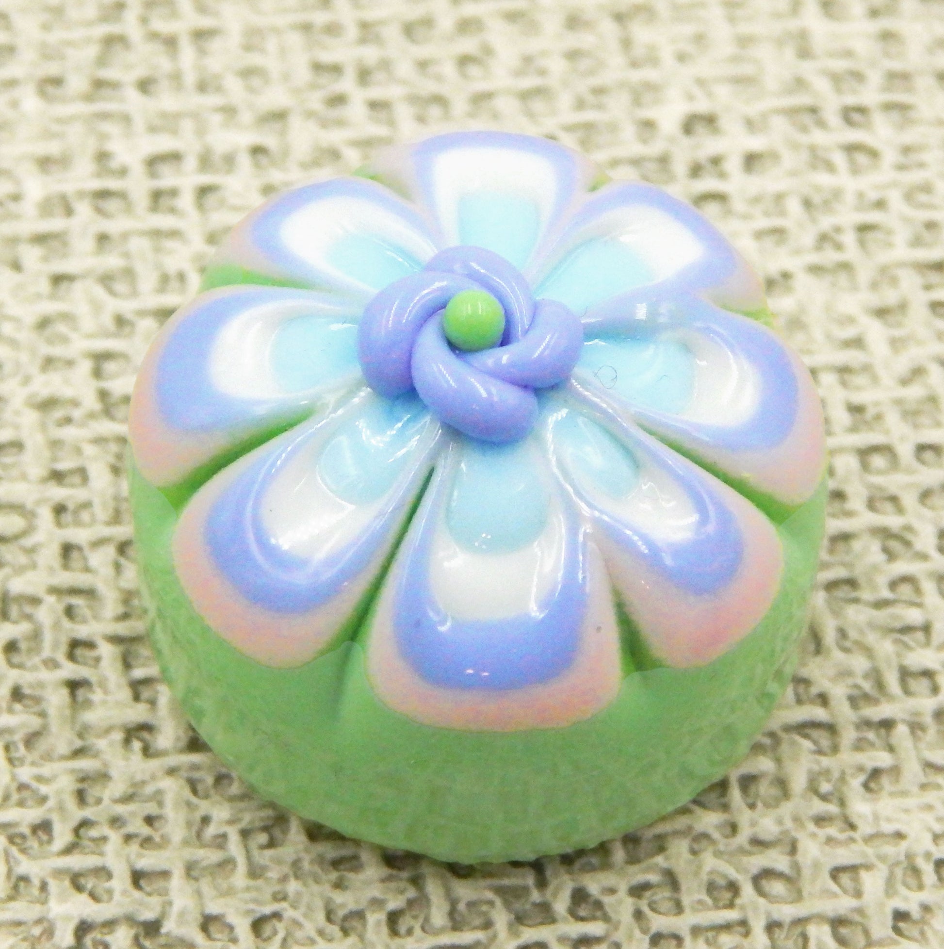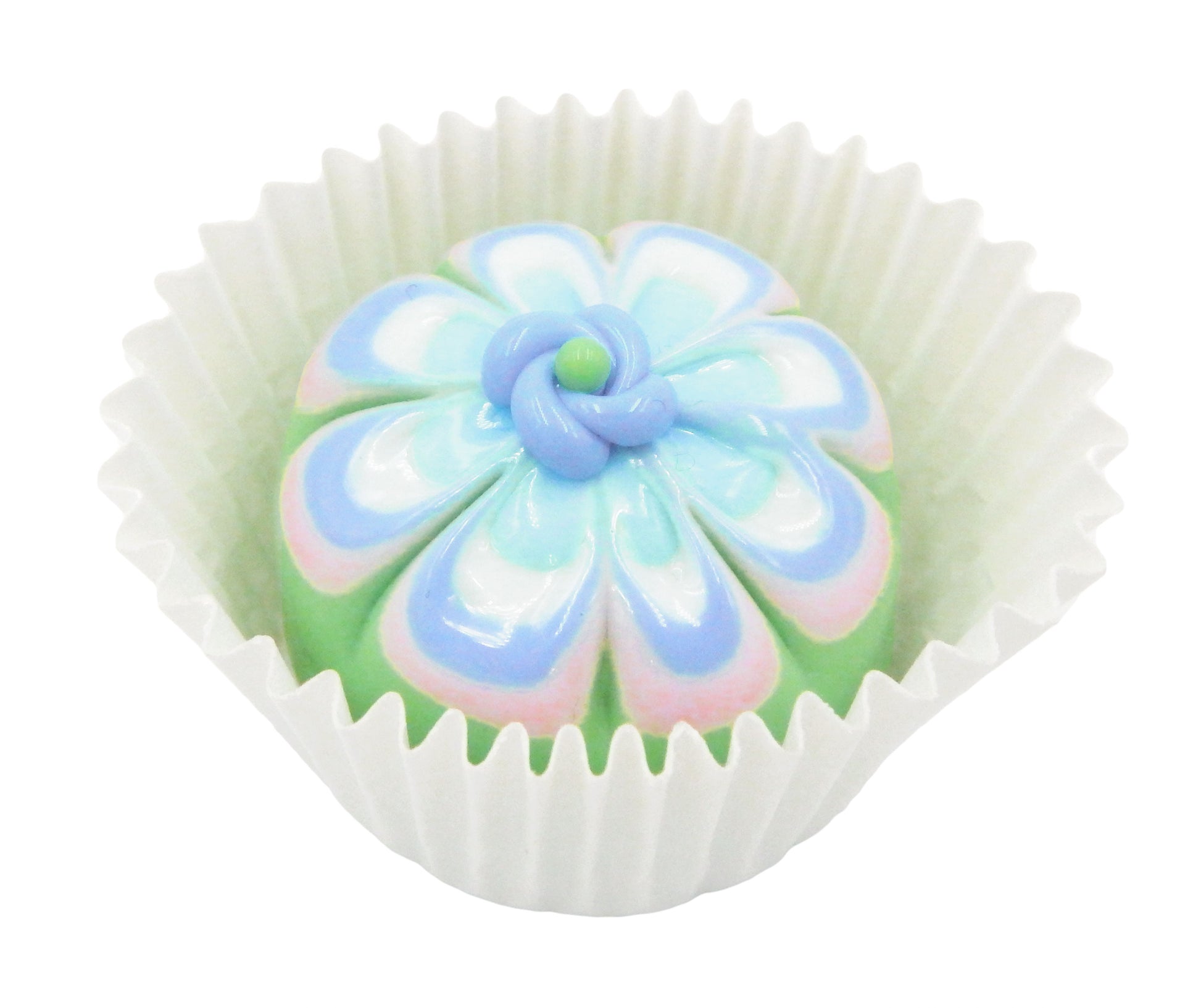 A handmade collectible solid glass mint chocolate with a cosmos design of berry blue and strawberry created from colorful glass utilizing flameworking techniques. Meticulous attention to detail has gone into the construction of each of our pieces to enhance its appeal and collectibility.
