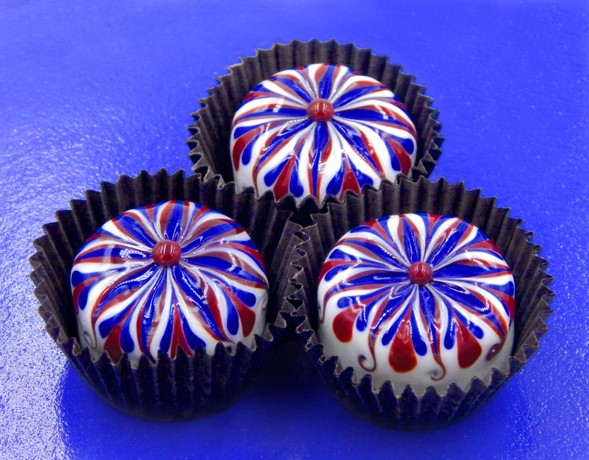 This listing is for 1 glass chocolate as seen in the first photo. The third photo shows an example of the slight variation between individual handmade chocolates. The final photo shows an assortment of other treats from our Patriotic Collection.