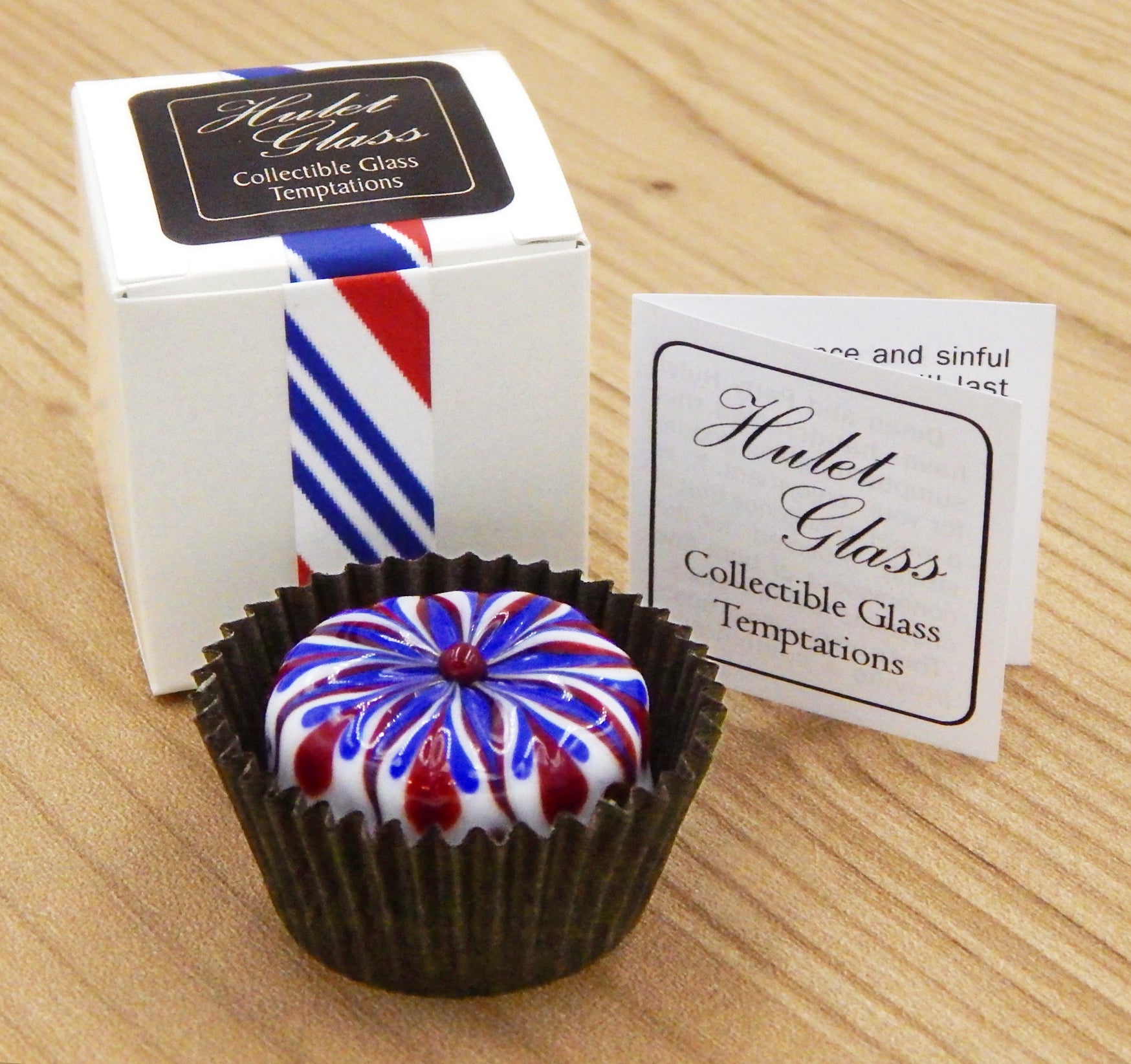 This inedible chocolate is from our 'Patriotic Collection' and is just one of our many chocolate treats. We design our art glass delicacies to evoke memories of innocence, love and happy times. These pieces are created to tease, seduce, tempt and delight. Use them to create a unique display in a favorite heirloom dish or cabinet for your home or office. They are also perfect and thoughtful gifts for yourself or your friends. These red, white & blue treats are great choices for Independence Day, Veteran's Day, Memorial Day, Election Day or other Presidential or Patriotic Celebrations.