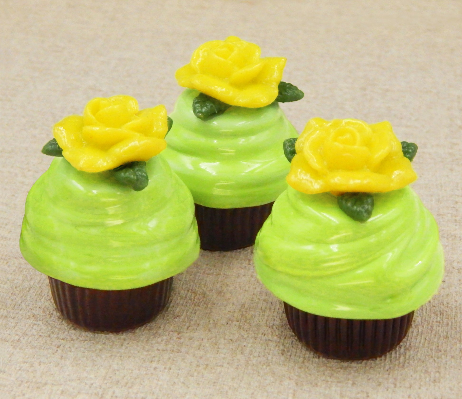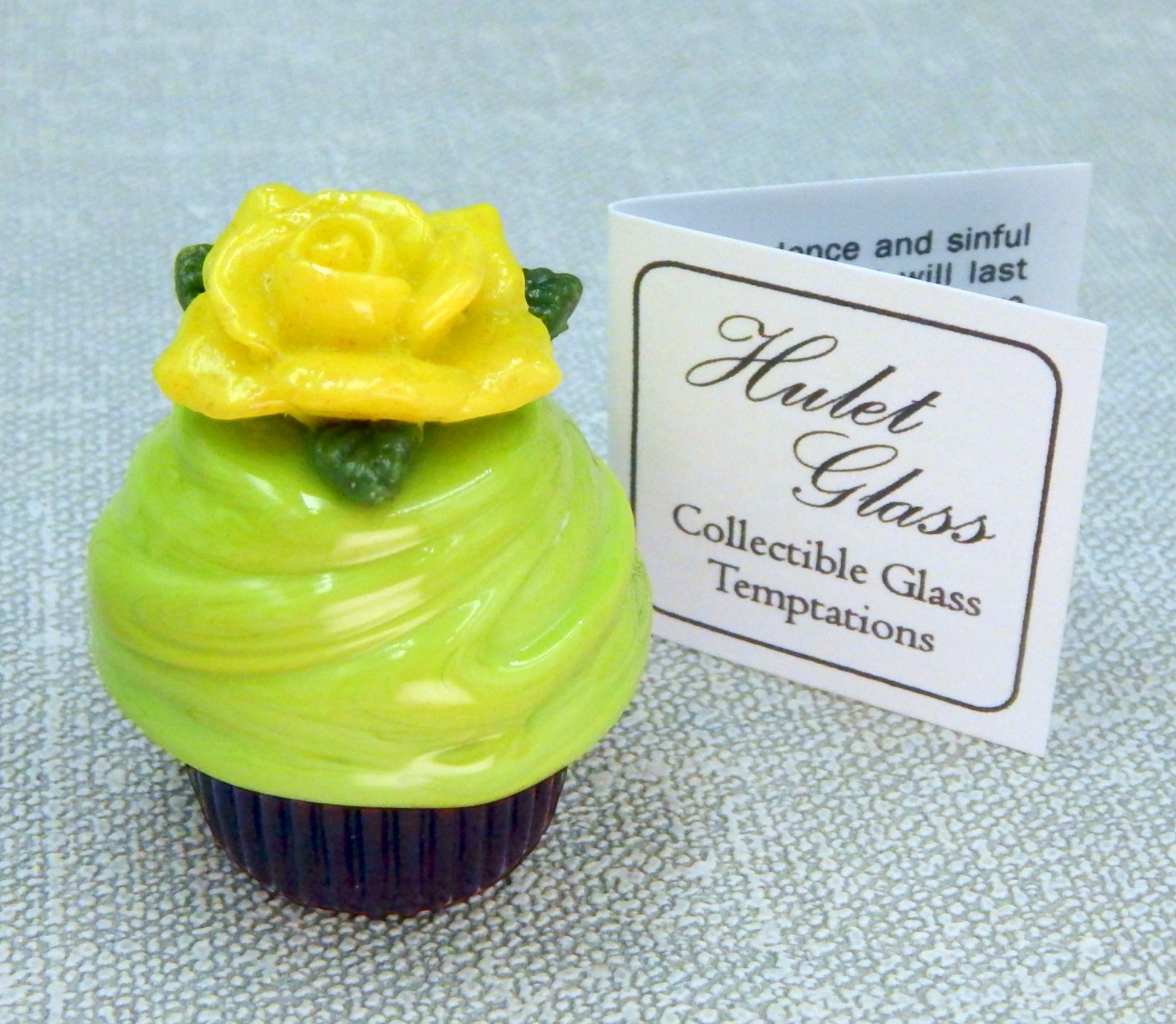A handmade collectible solid glass Yellow Rose Mini Cupcake Truffle created from colorful glass utilizing flameworking techniques. Meticulous attention to detail has gone into the construction of each of our pieces to enhance its appeal and collectibility.